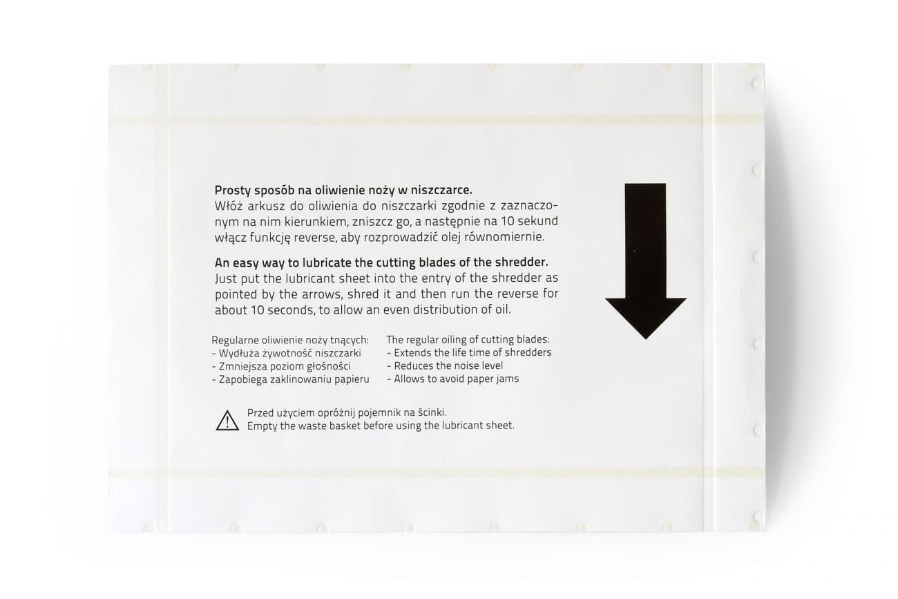 Olej do niszczarek usprawnia pracę niszczarek tnących na ścinki, regularne oliwienie zabezpiecza przed osadzeniem się ścinków na nożach