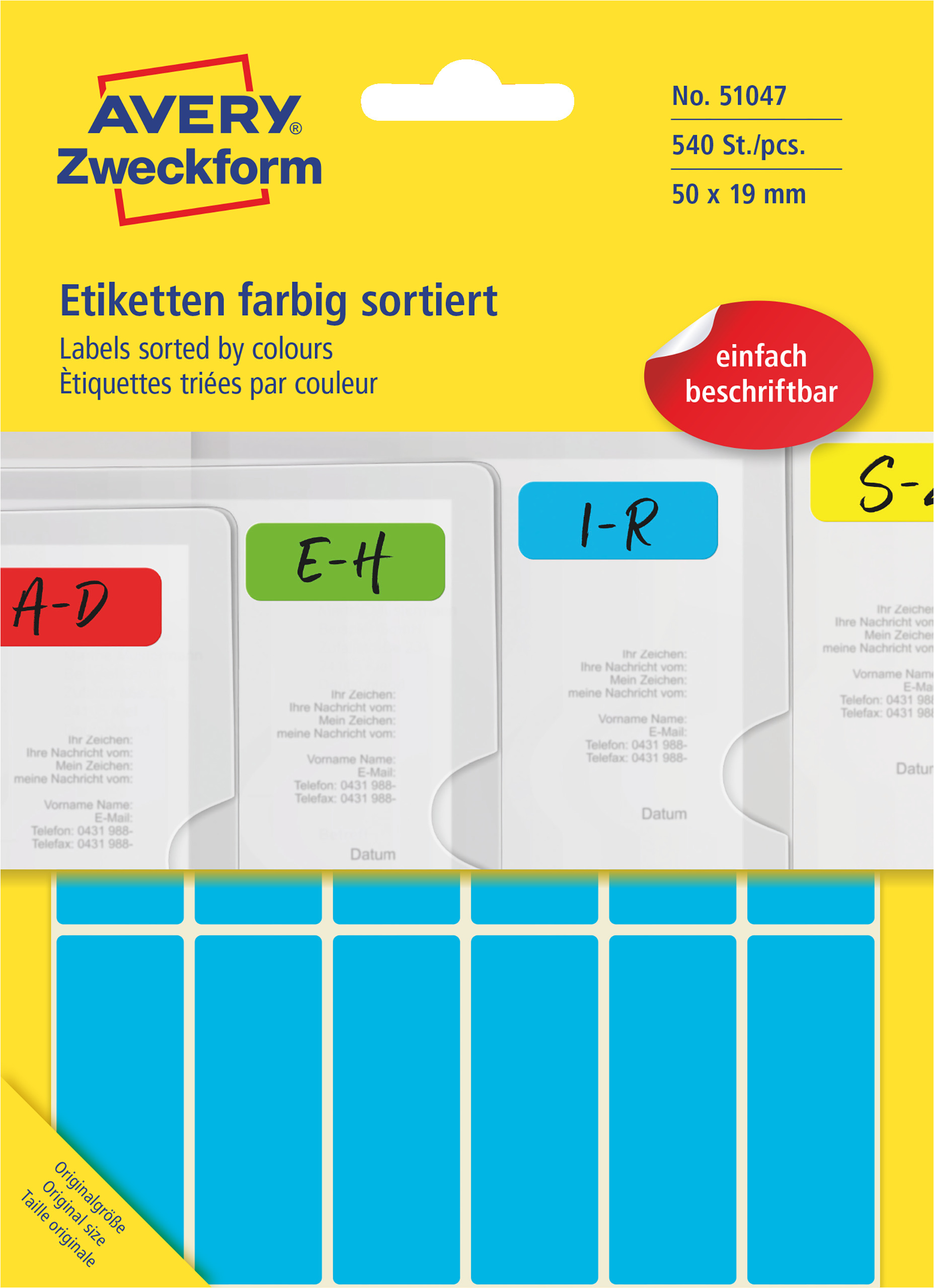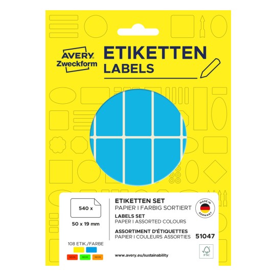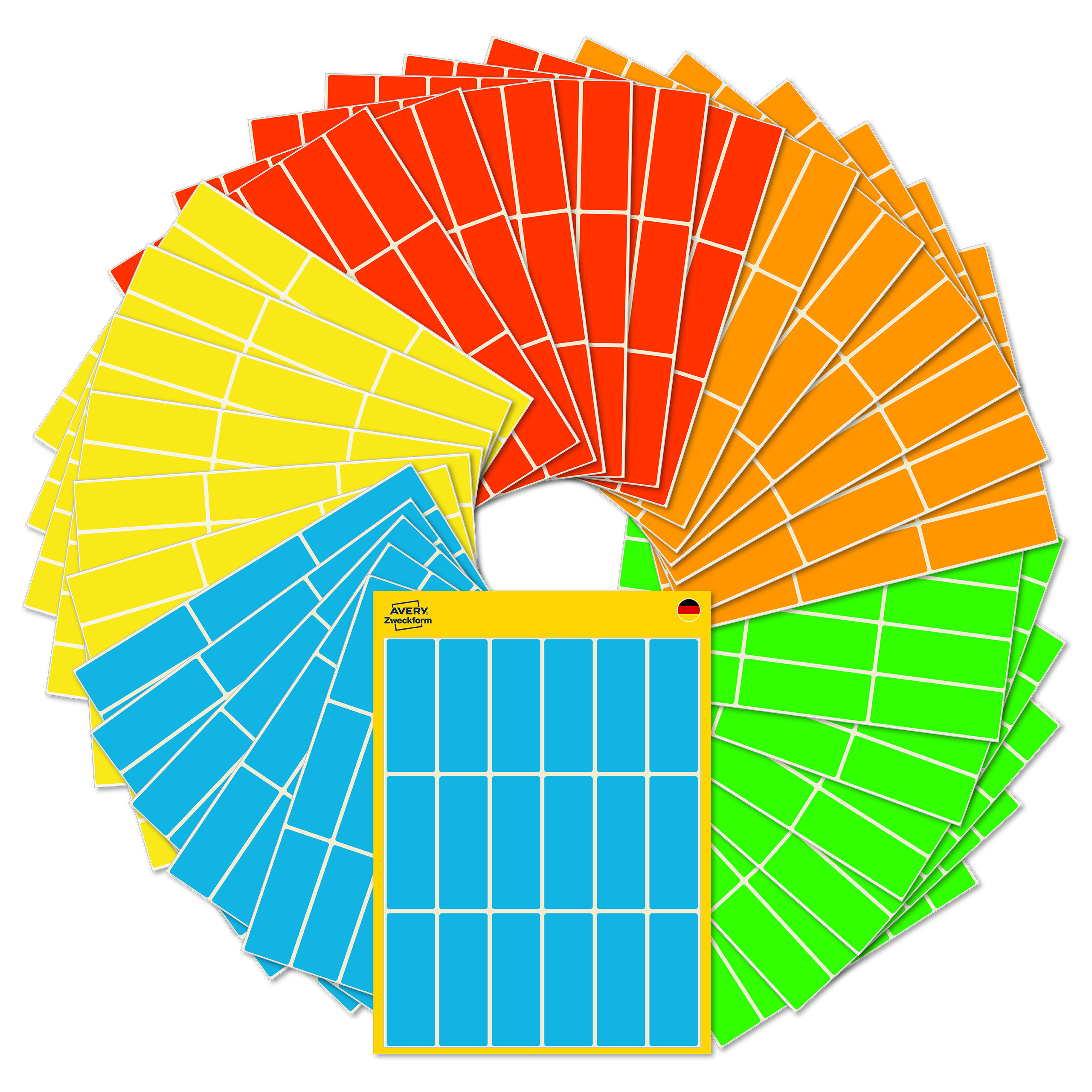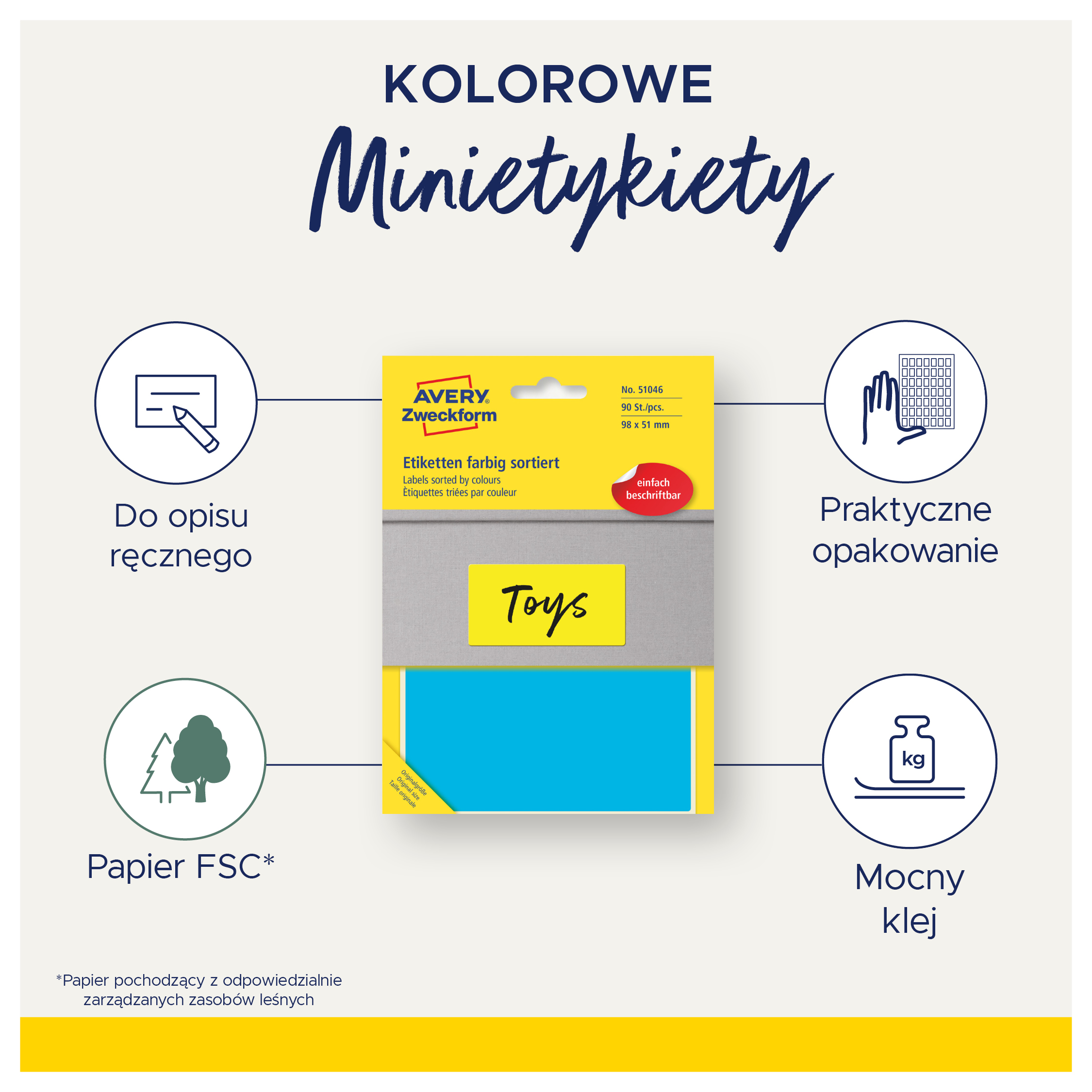Trwałe etykiety kolorowe Avery 51047 - 50 x 19 mm, mix 5 kolorów, 30 arkuszy - wielokolorowy