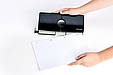 Metalowy, podwójny dziurkacz z blokadą i ogranicznikiem formatu do wszystkich popularnych formatów DIN. Solidne 4-krotne dziurkowanie.