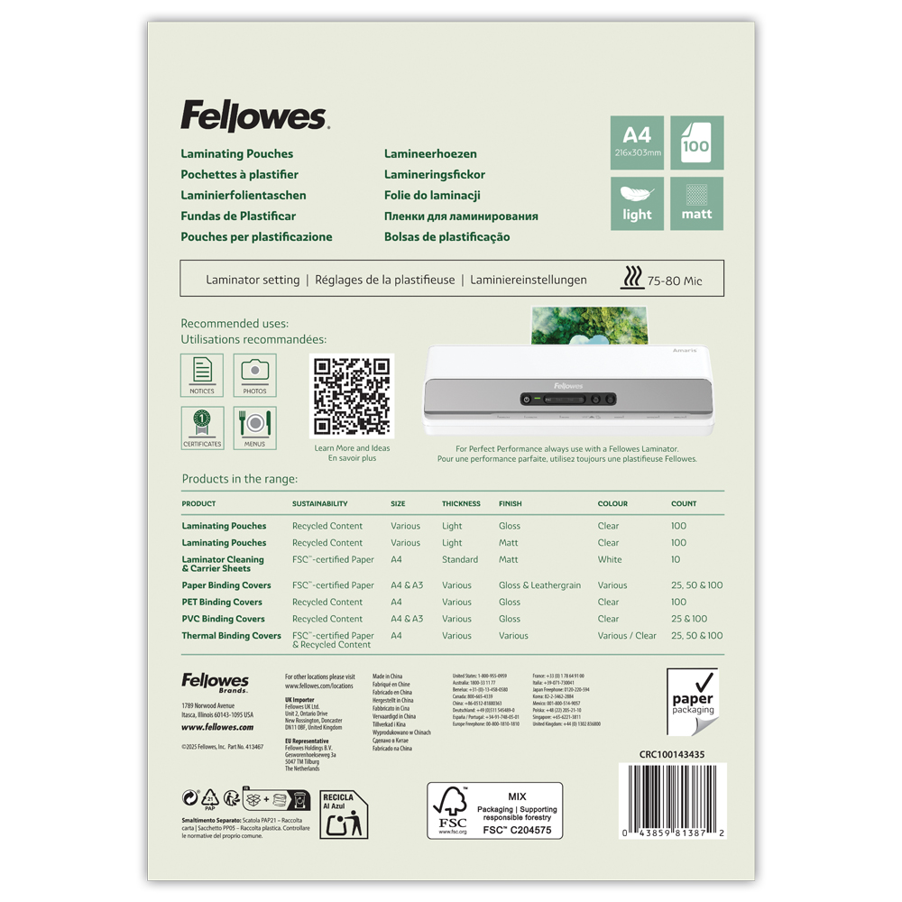 Eco™ Folie do laminacji A4 Light (matowe) ekologiczne – opk. 100 sztuk Fellowes