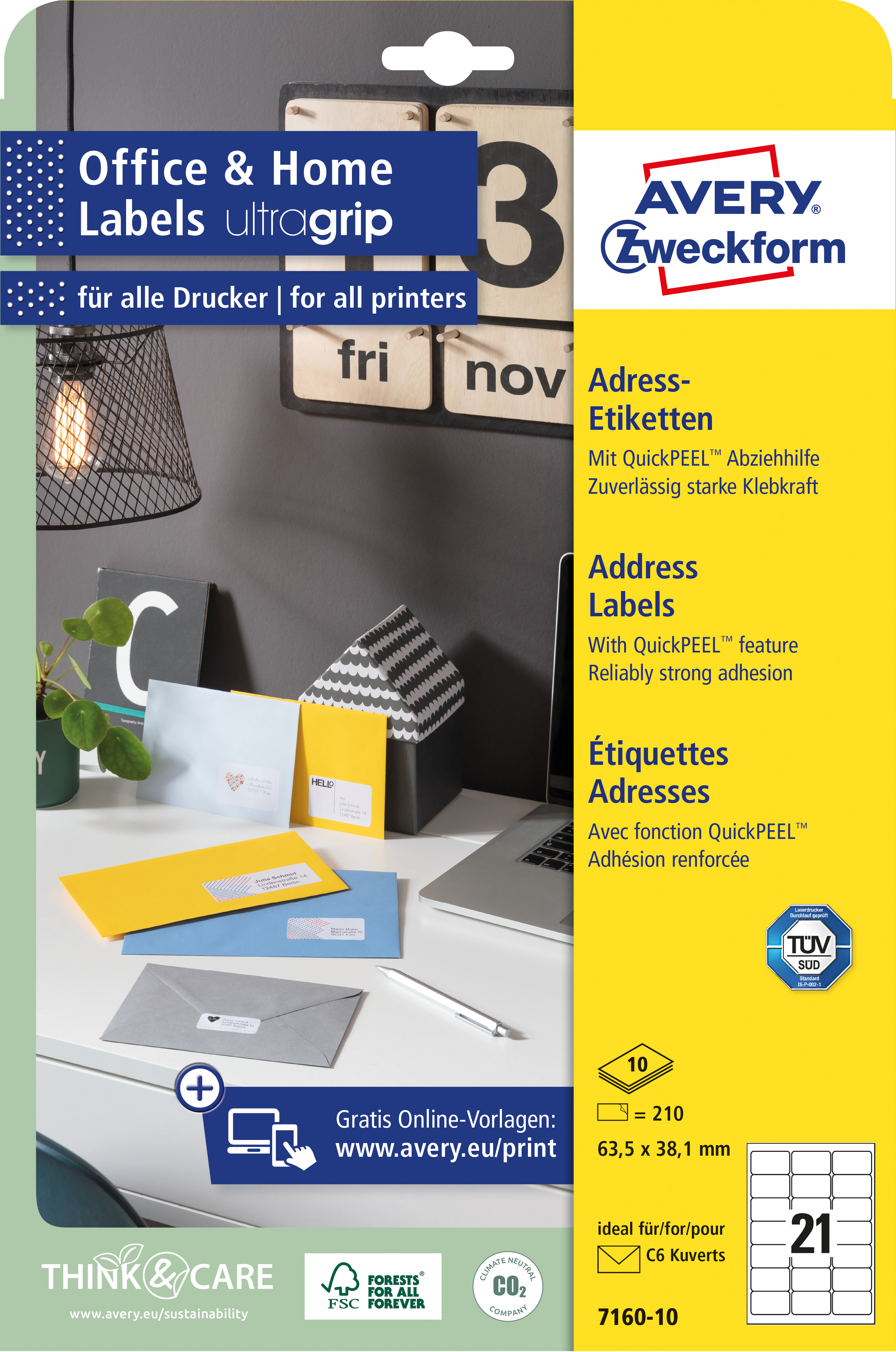 Etykiety adresowe Avery 7160-10 - 63,5 x 38,1 mm, 10 arkuszy - biały