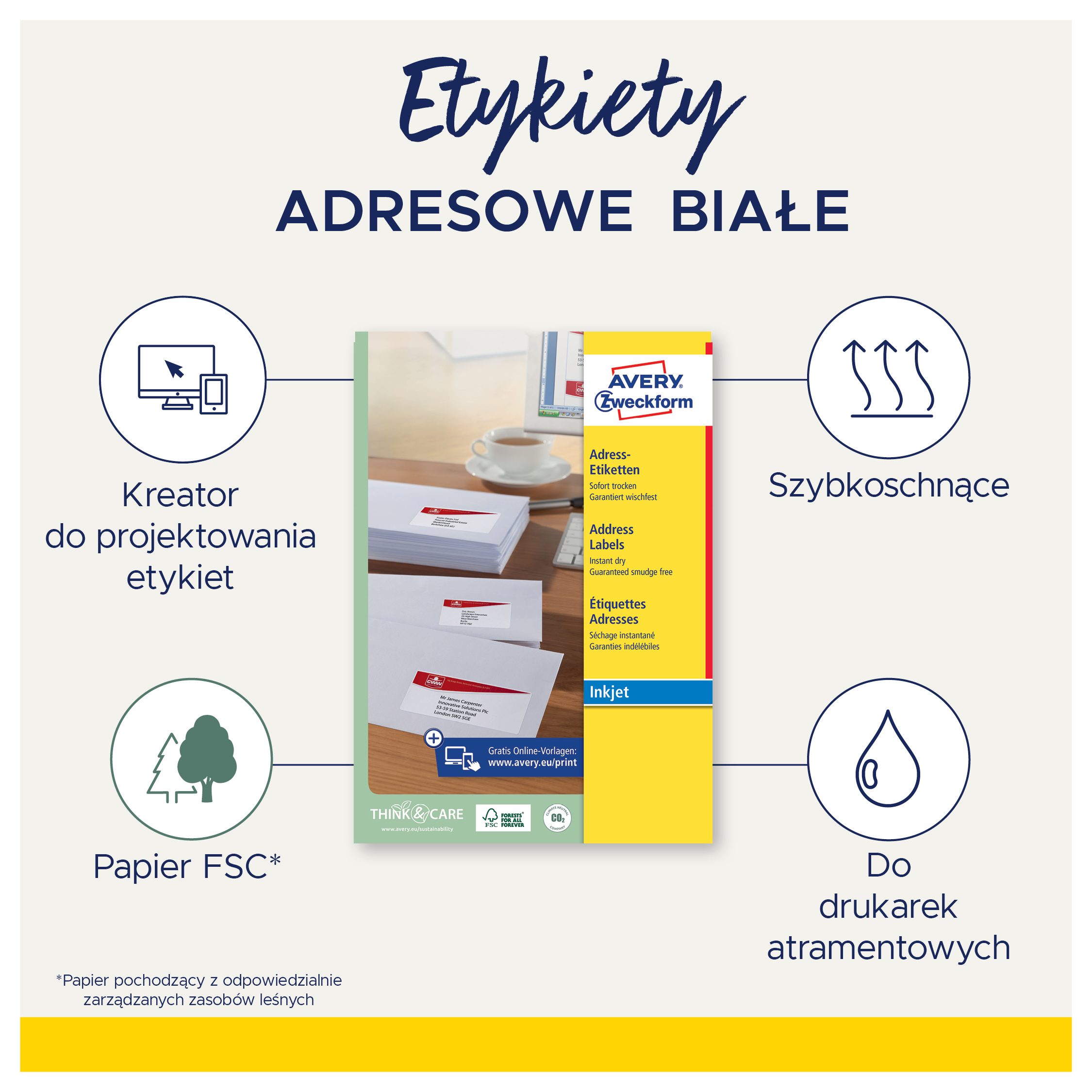Etykiety adresowe Avery J4792-25 - 63,5 x 29,6 mm , 25 arkuszy - biały