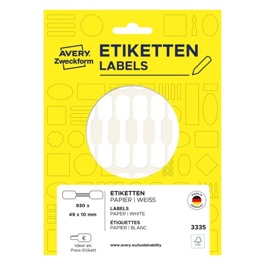 Etykiety cenowe do opisywania ręcznego Avery 3335 - 930 etyk., 31 arkuszy, 49 x 10 mm - biały