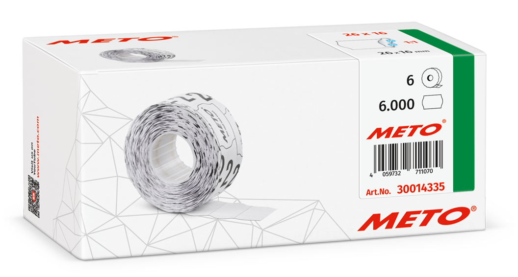 Etykiety cenowe w rolce do metkownicy dwurzędowej, 26 x 16 mm, do głębokiego mrożenia, metki METO M30014335 - 6 rolek / 6000 etykiet - białe