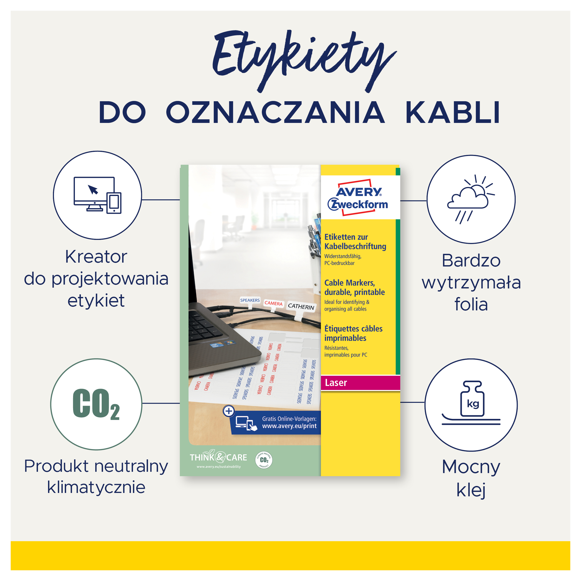 • Oszczędzaj czas z DARMOWYMI i łatwymi w użyciu szablonami Avery Zweckform oraz oprogramowaniem dostępnym na stronie www.avery-zweckform.pl