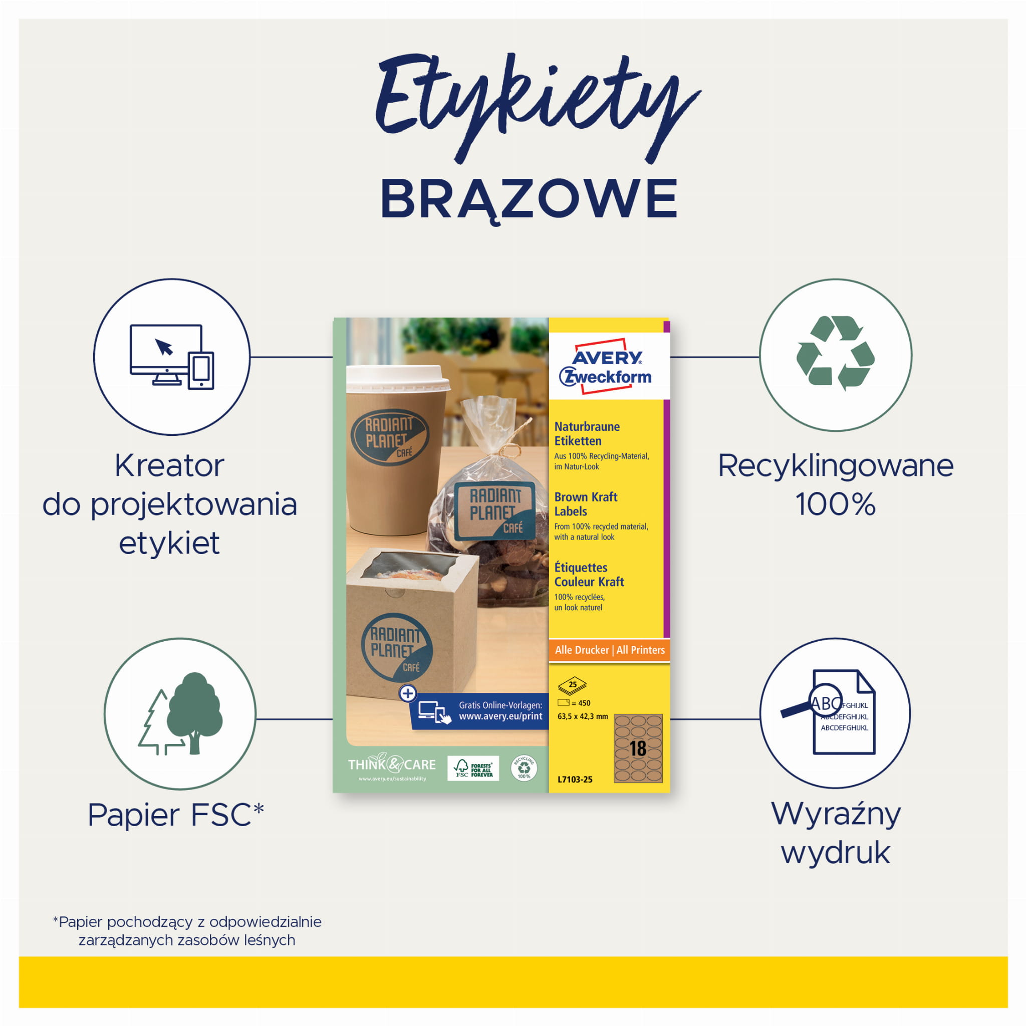 Etykiety ekologiczne okrągłe Avery Zweckform L7105-25 - ⌀ 40 mm A4, 25 arkuszy - brązowe