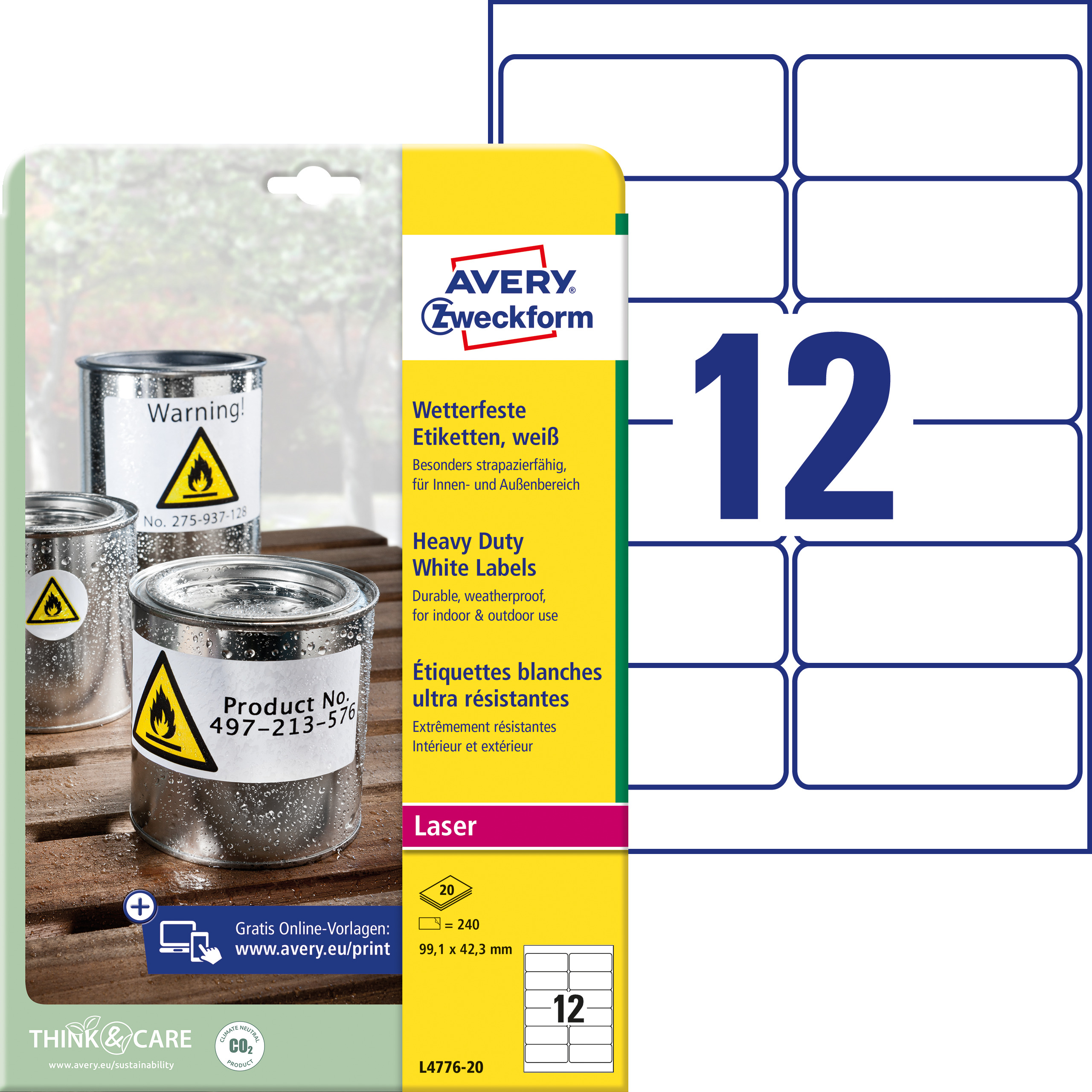 Etykiety foliowe, wodoodporne, trwałe Avery L4776-20 / 99,1 x 42,3 mm, 20 arkuszy - biały