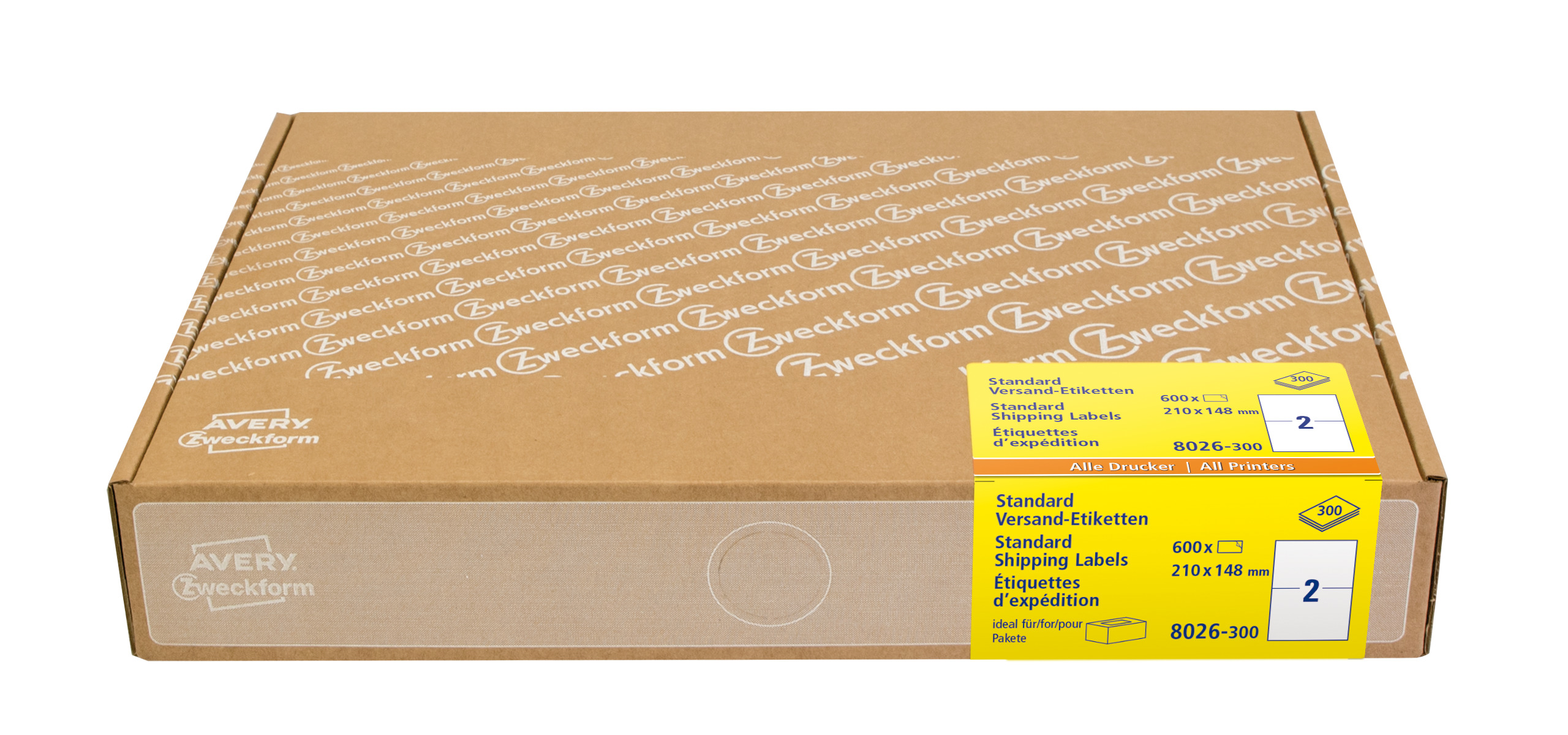 Etykiety na paczki Avery 8026-300 - 210 x 148 mm, 300 arkuszy - biały