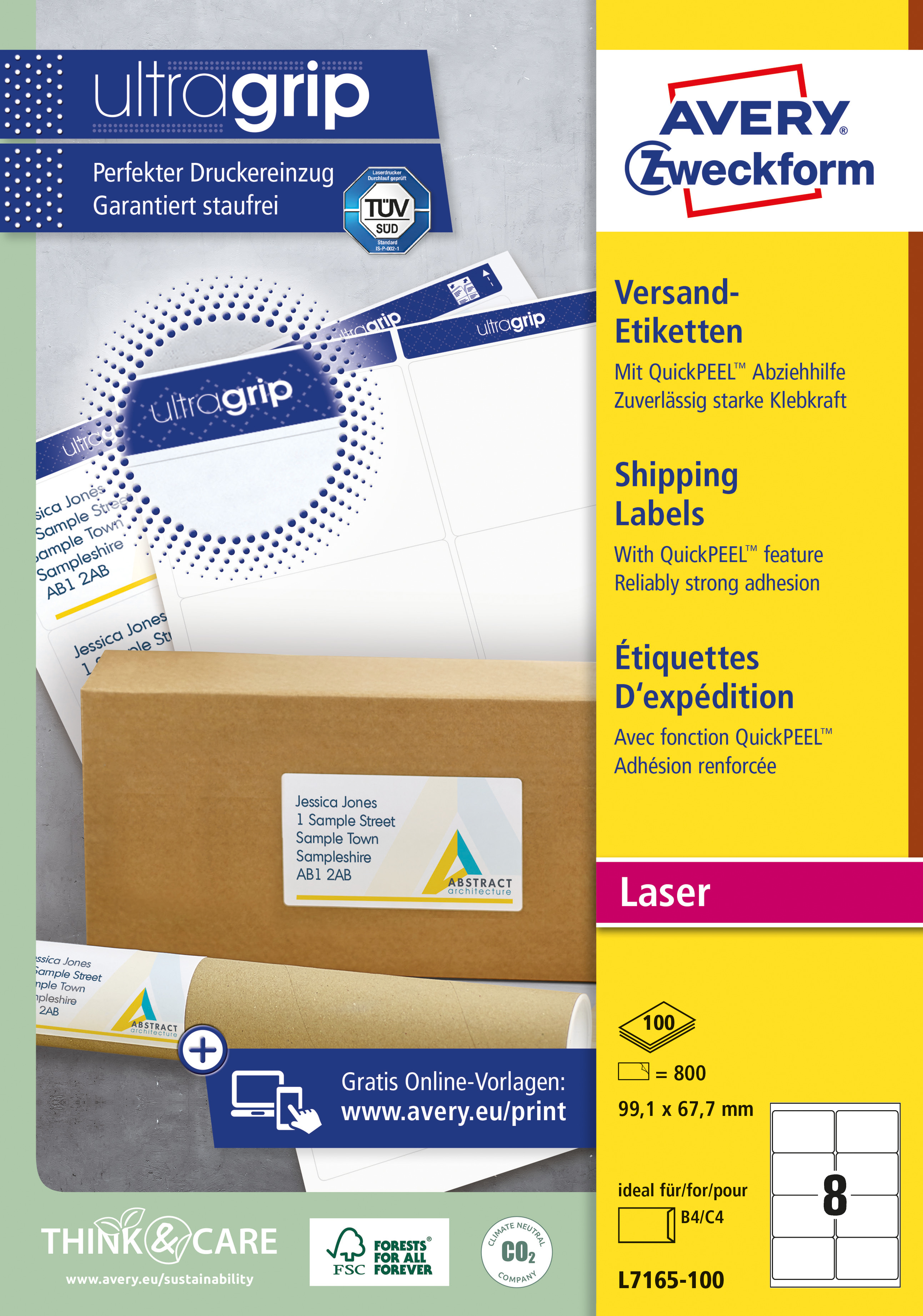 Etykiety na paczki Avery L7165-100 - 99,1 x 67,7 mm, 100 arkuszy - biały
