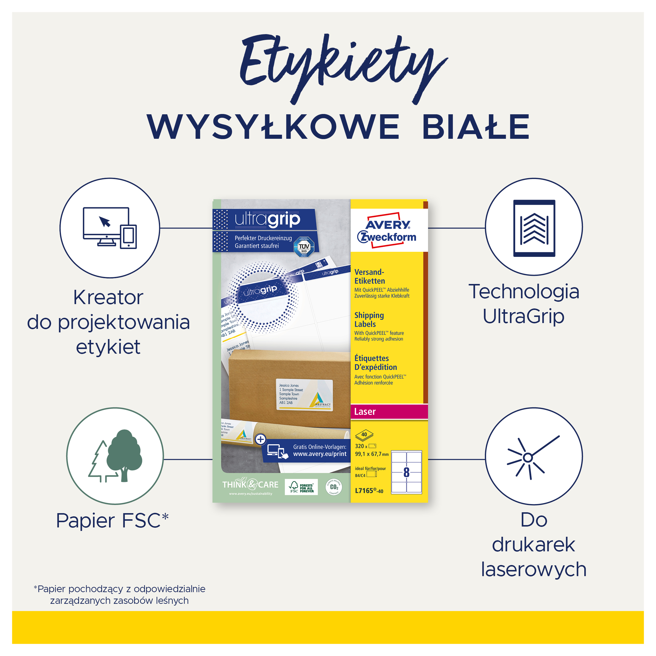 Etykiety na paczki Avery L7165-250 - 99,1 x 67,7 mm, 250 arkuszy - biały