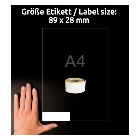Etykiety na rolce, etykiety adresowe, do termodruku Avery AS0722370 / 28 x 89 mm, 260 etyk., 2 rolki - biały