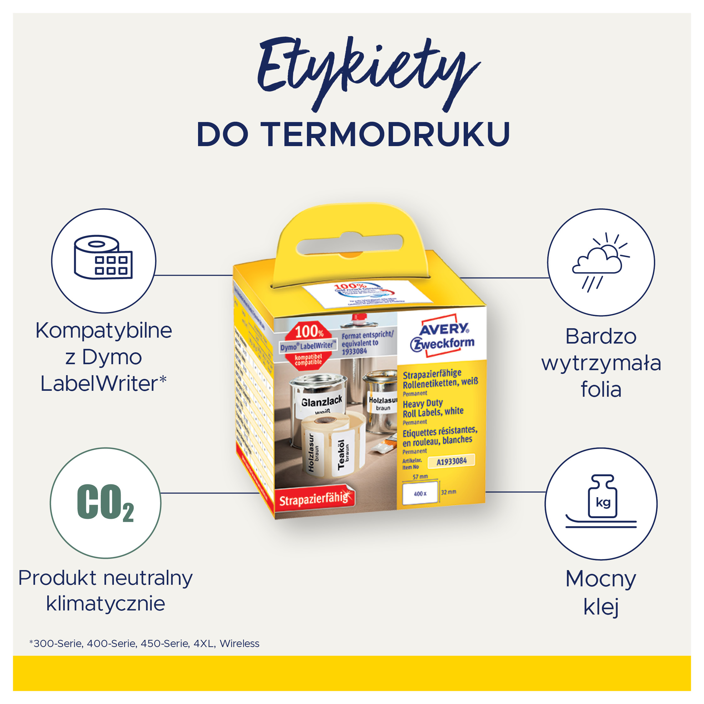 • Etykiety Heavy Duty Avery Zweckform w rolce do drukarek termicznych