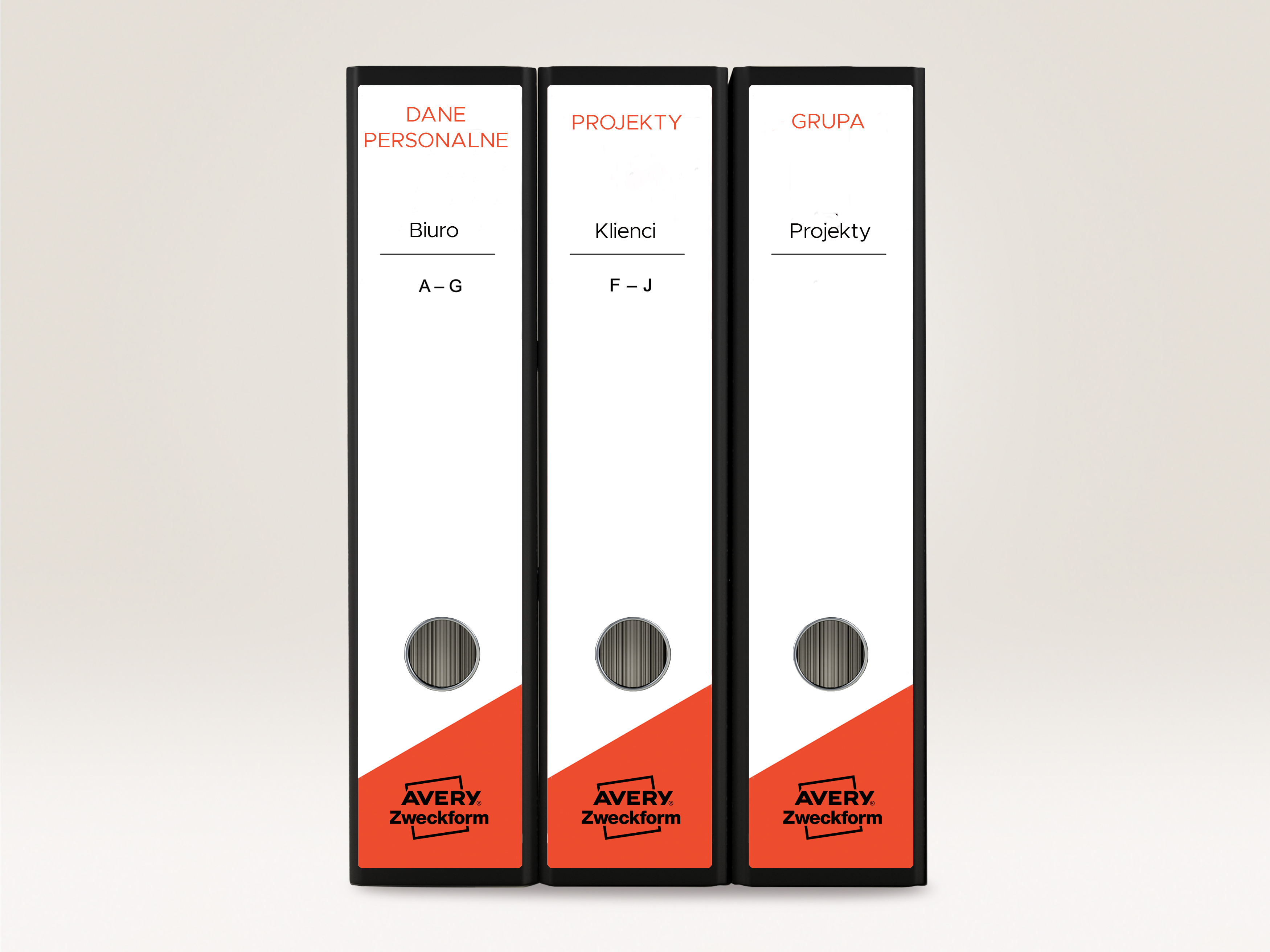 • Etykiety samoprzylepne, które silnie przylegają do grzbietu segregatora