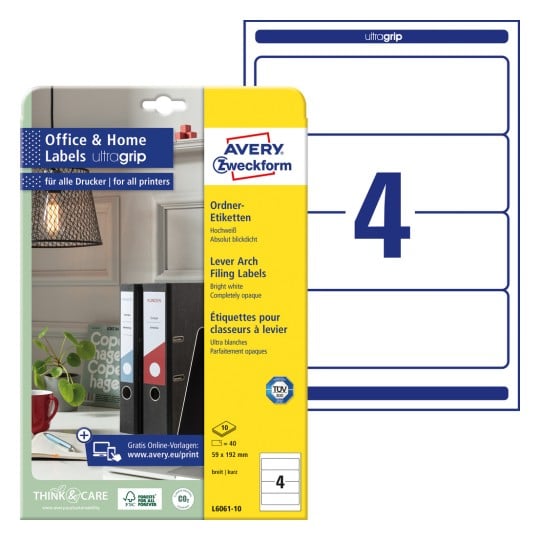 Etykiety na segregatory Avery L6061-10 - 59 x 192 mm, 10 arkuszy - biały