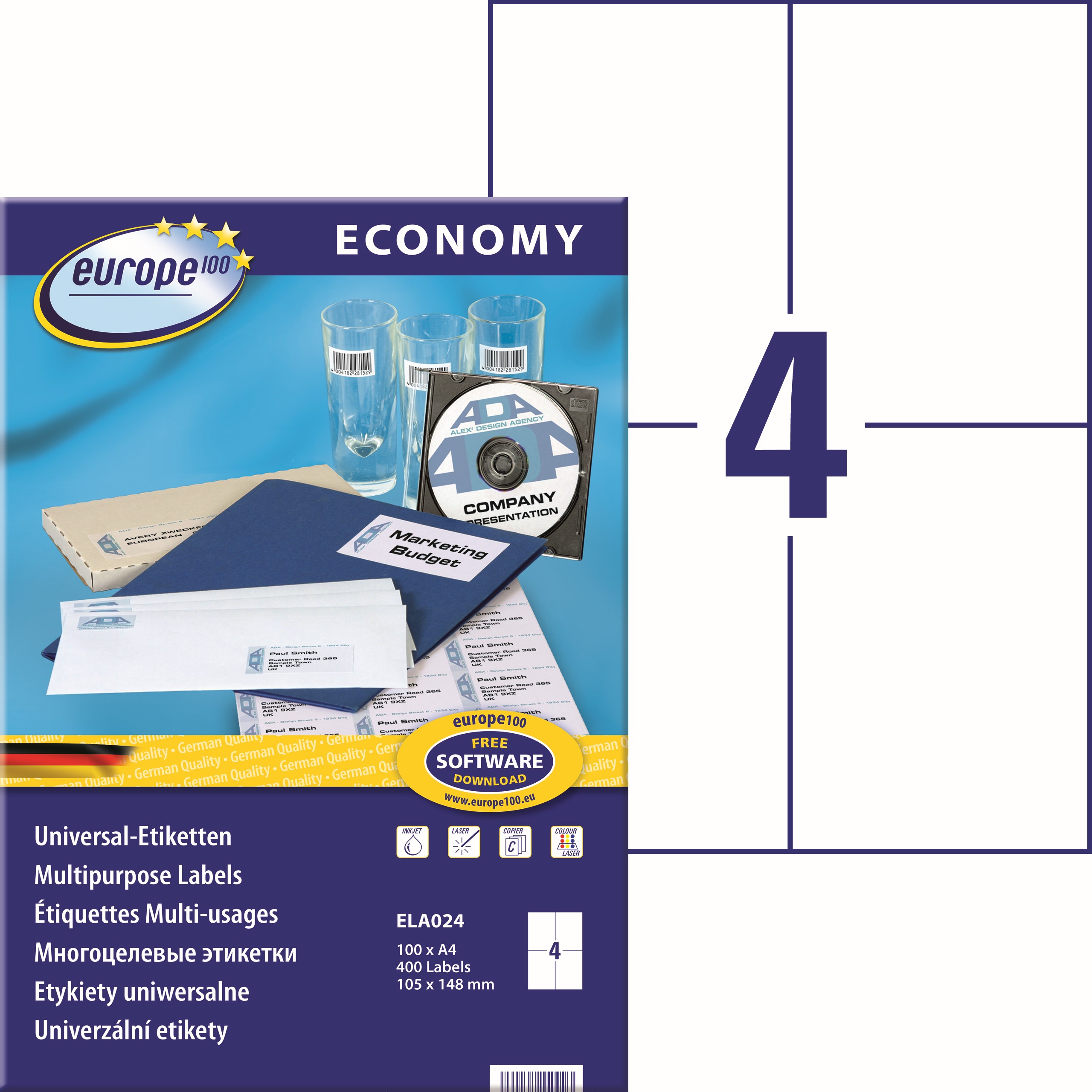 Etykiety uniwersalne Economy Europe100 by Avery Zweckform, A4, 100 ark./op., 105 x 148,5 mm, białe