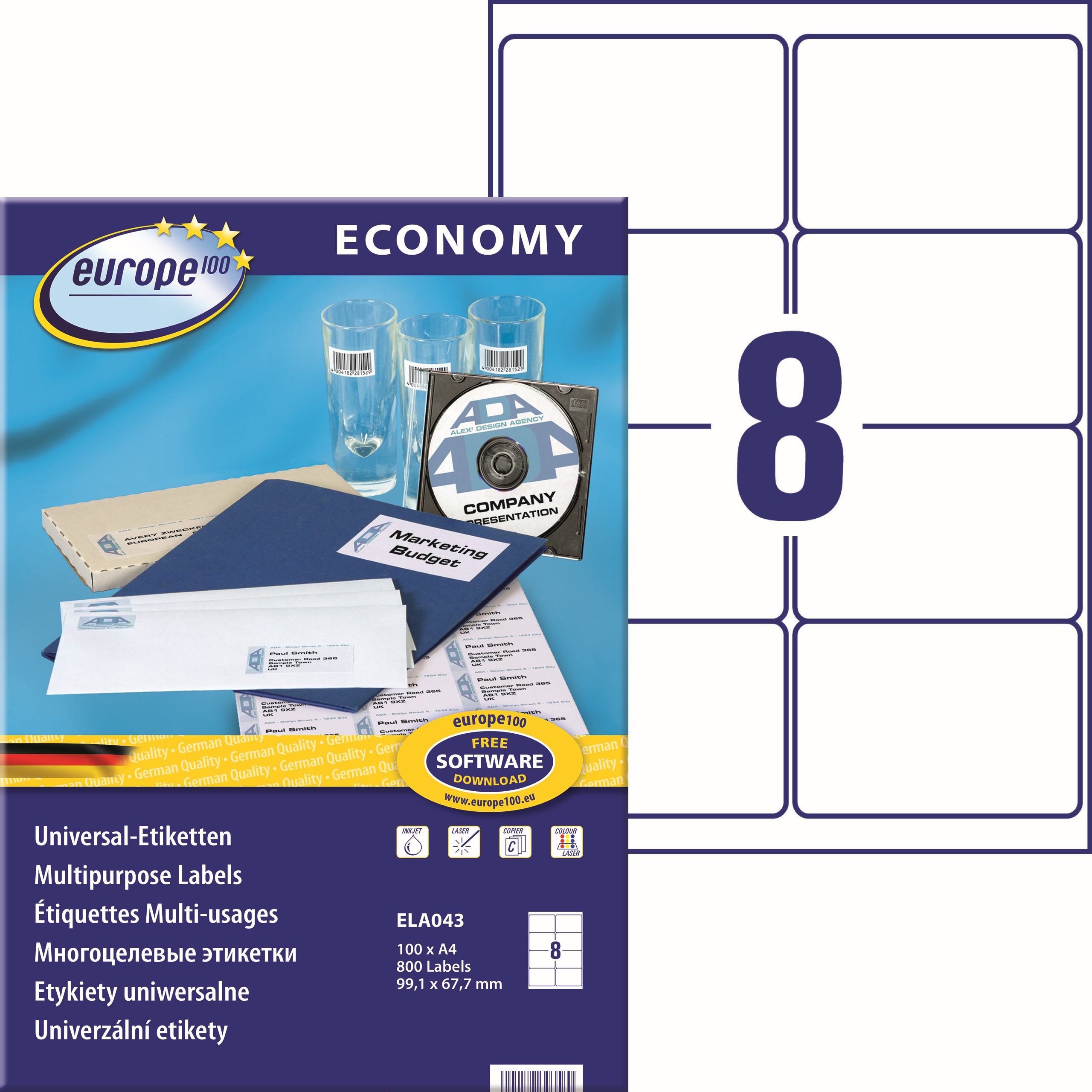 Etykiety uniwersalne Economy Europe100 by Avery Zweckform, A4, 100 ark./op., 99,1x67,7mm, białe