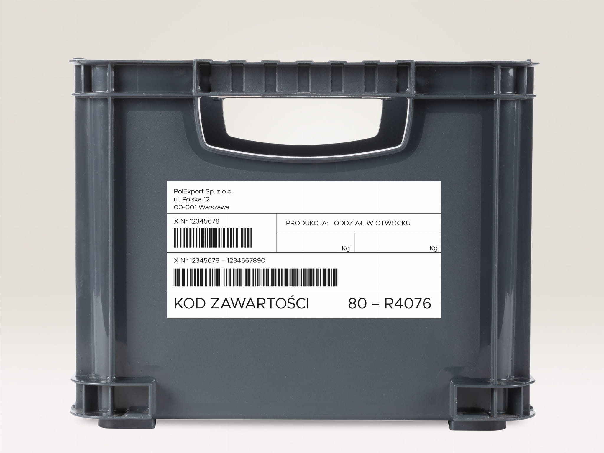 - Trwałe, białe etykiety foliowe zapewniające mocne przyleganie