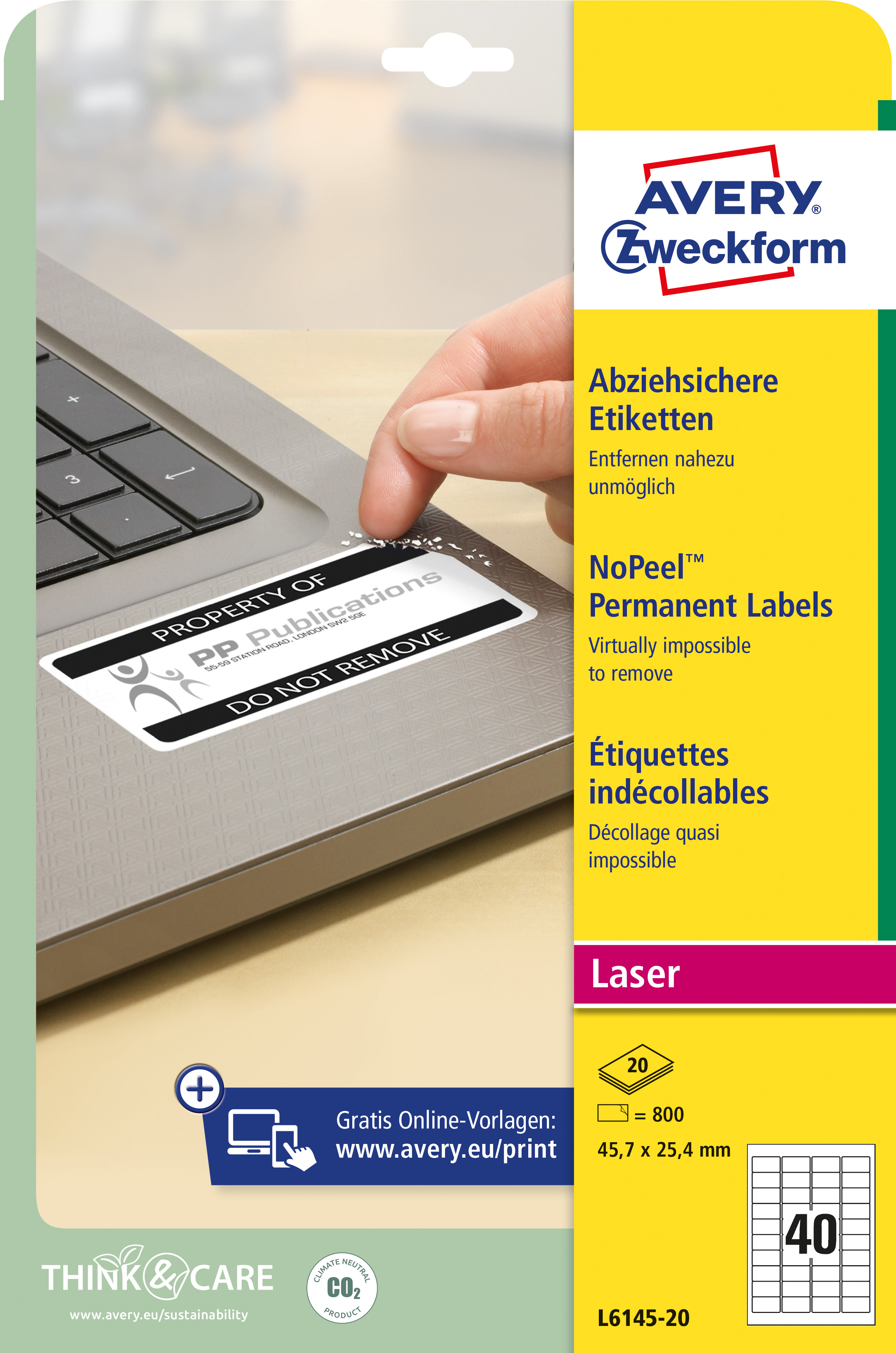 • Produkcja etykiet Avery Zweckform jest neutralna pod względem emisji CO2 (certyfikat Focus Future) i zgodna ze standardem ISO14001, który pomaga zminimalizować negatywne czynniki oddziałujące na środowisko naturalne.