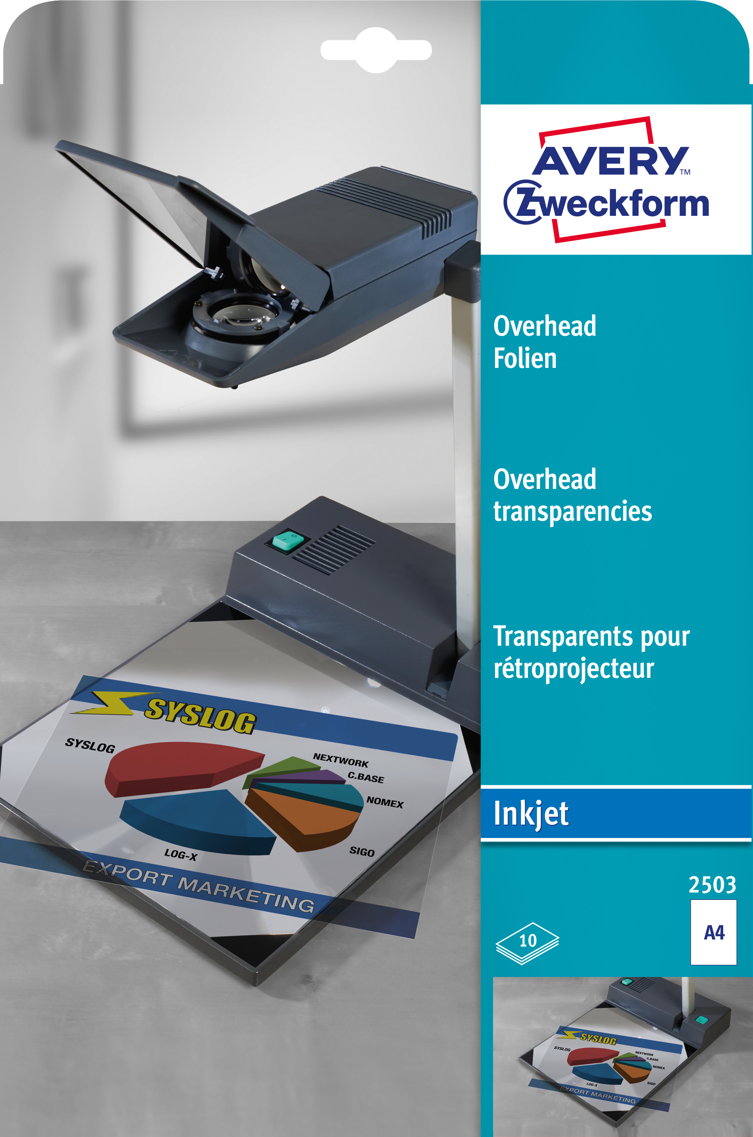 Folia projekcyjna powlekana A4, Avery 2503 / 10 szt., grubość 0,11 mm - przeźroczysty
