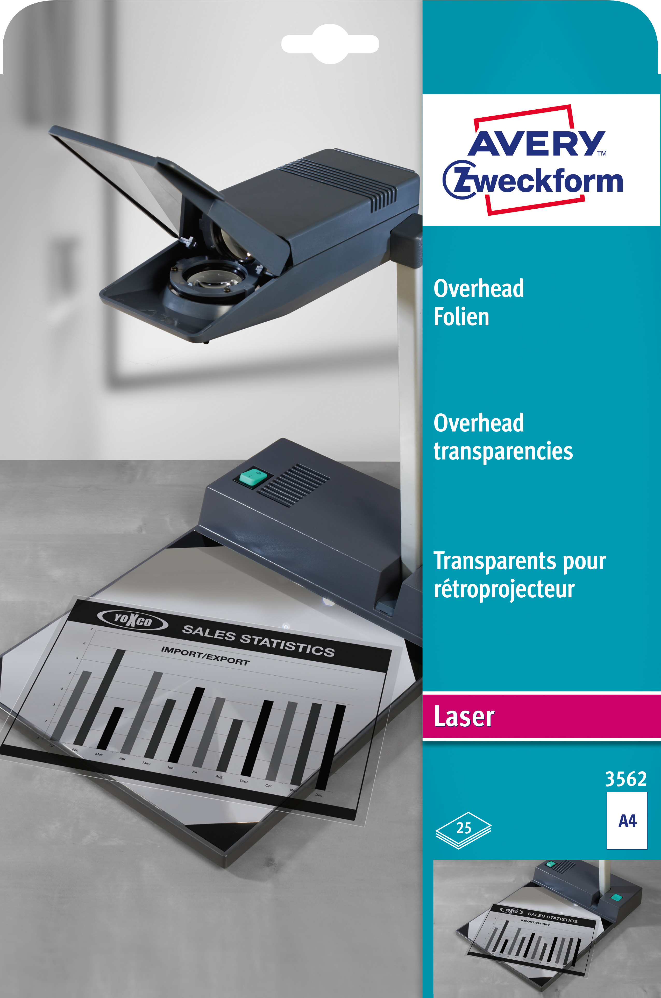 Folia projekcyjna przeźroczysta, powlekana A4, Avery 3562 / , 25 szt., grubość 0,10 mm - przeźroczysty