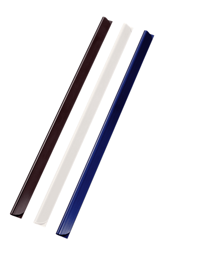 Grzbiety wsuwane są uniwersalnym sposobem oprawy nieprzedziurkowanych dokumentów, bez użycia bindownicy. Kartki papieru trzeba tylko wsunąć w plastikową listwę - to wszystko! Idealne do szybkiej i łatwej oprawy. Grzbiety wsuwane mogą być łączone z okładkami do oprawy grzbietowej.