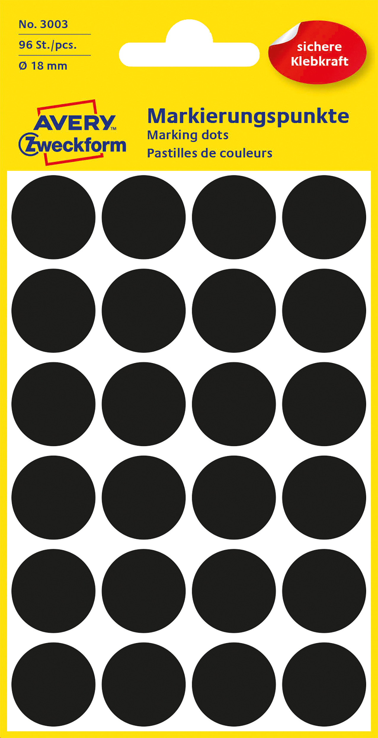 Kółka do zaznaczania Avery 3003 - Ø 18 mm, 96 etyk., 4 arkusze - czarny