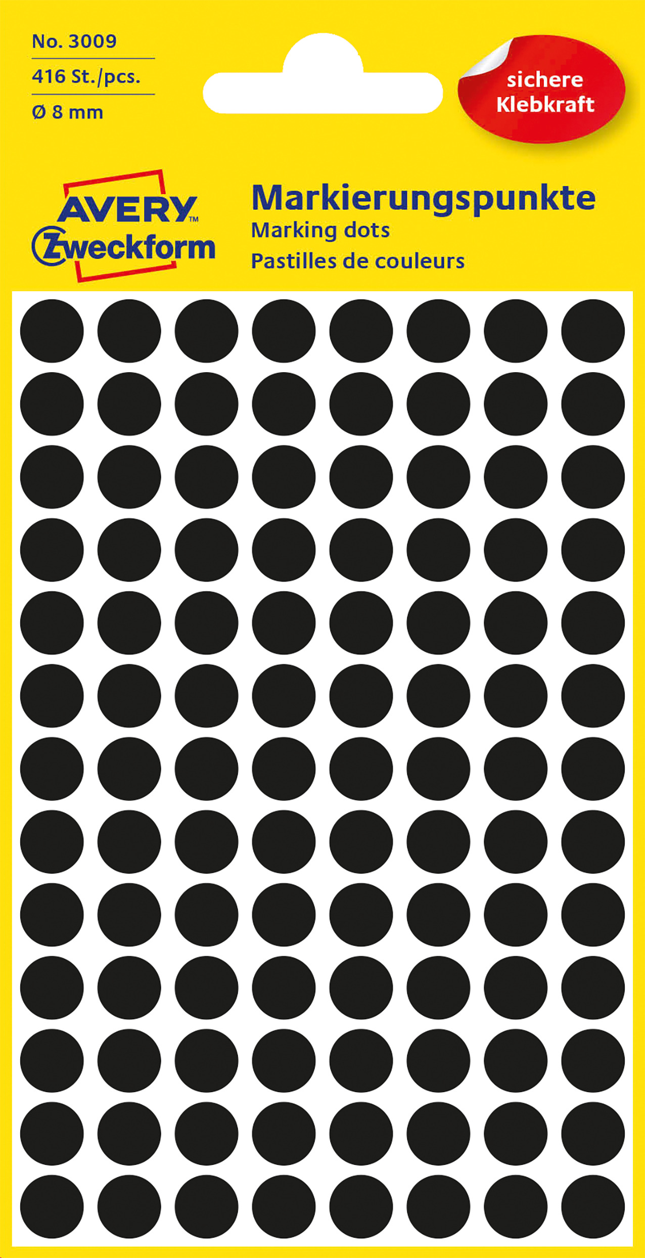 Kółka do zaznaczania Avery 3009 - Ø 8 mm, 416 etyk., 4 arkusze - czarny