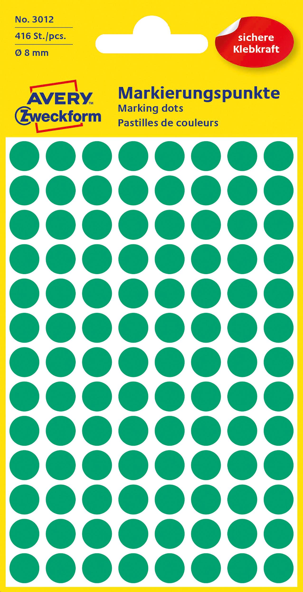 Kółka do zaznaczania Avery 3012 - Ø 8 mm, 416 etyk., 4 arkusze - zielony