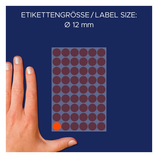• Kolorowe, okrągłe etykiety w małych rozmiarach, do zaznaczania i organizowania