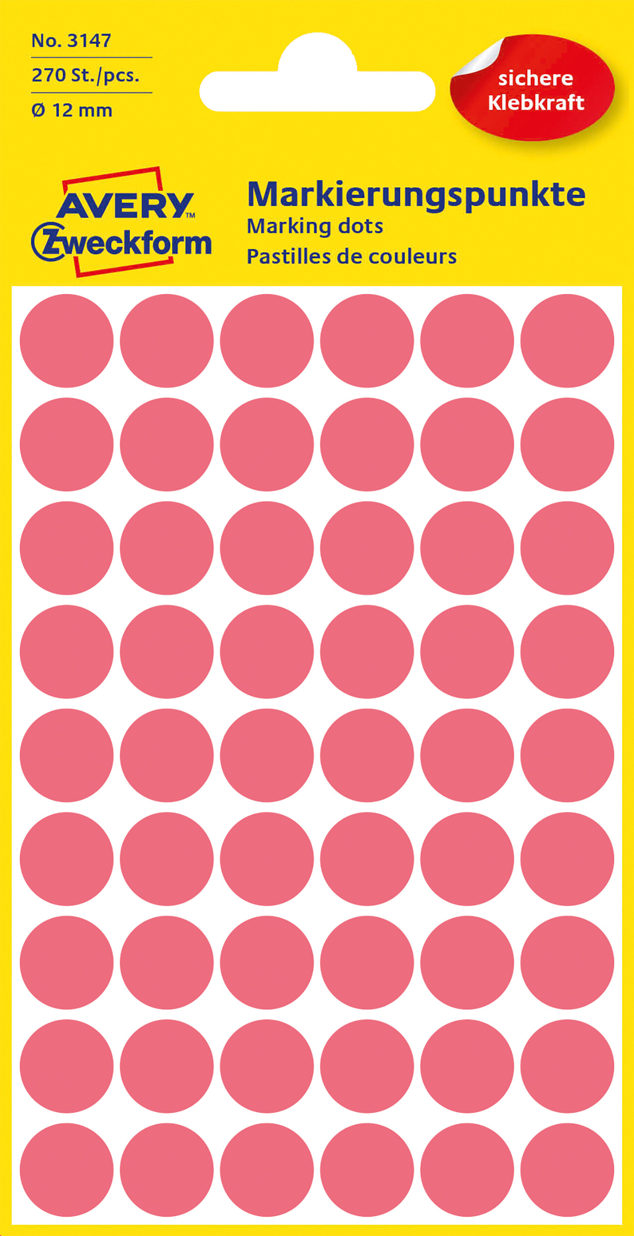 Kółka do zaznaczania Avery 3147 - Ø 12 mm, 270 etyk., 5 arkuszy - czerwony neonowy