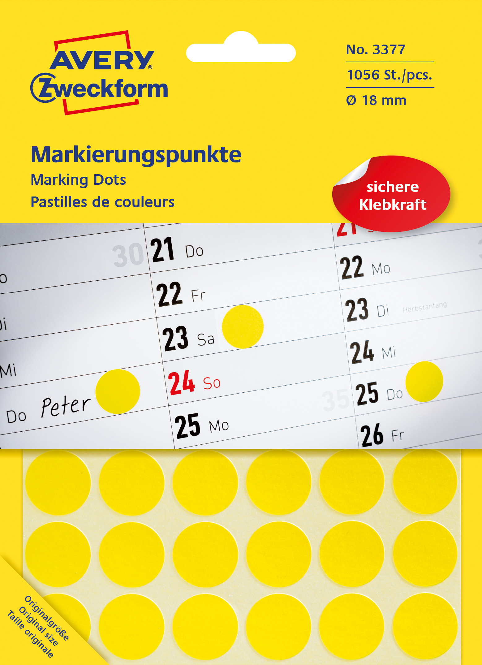 Kółka do zaznaczania Avery 3377 - Ø 18 mm, 1056 etyk., 22 arkusze - żółty