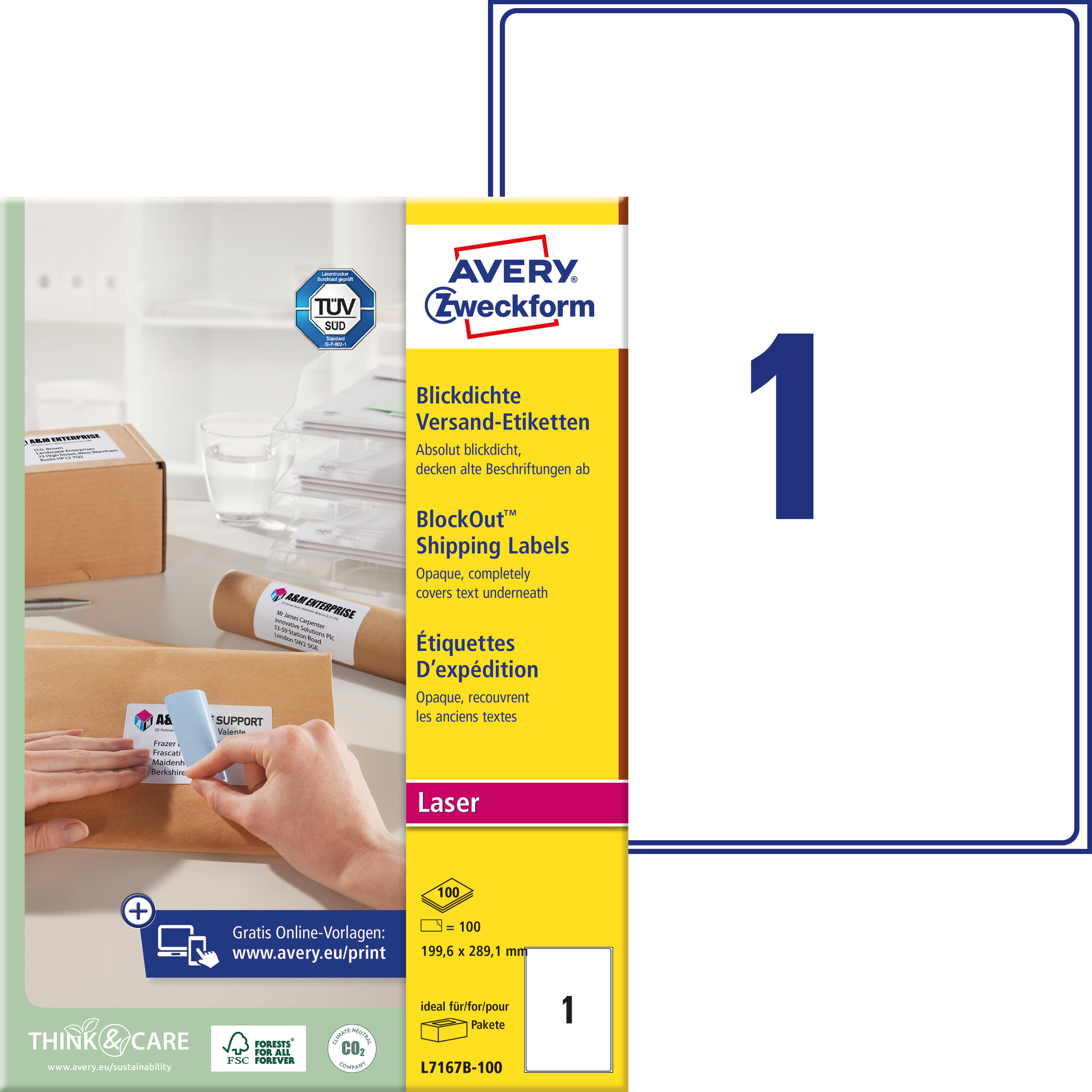 Kryjące etykiety na paczki z BlockOut ™ Avery L7167B-100 - 199,6 x 289,1 mm, 100 arkuszy - biały