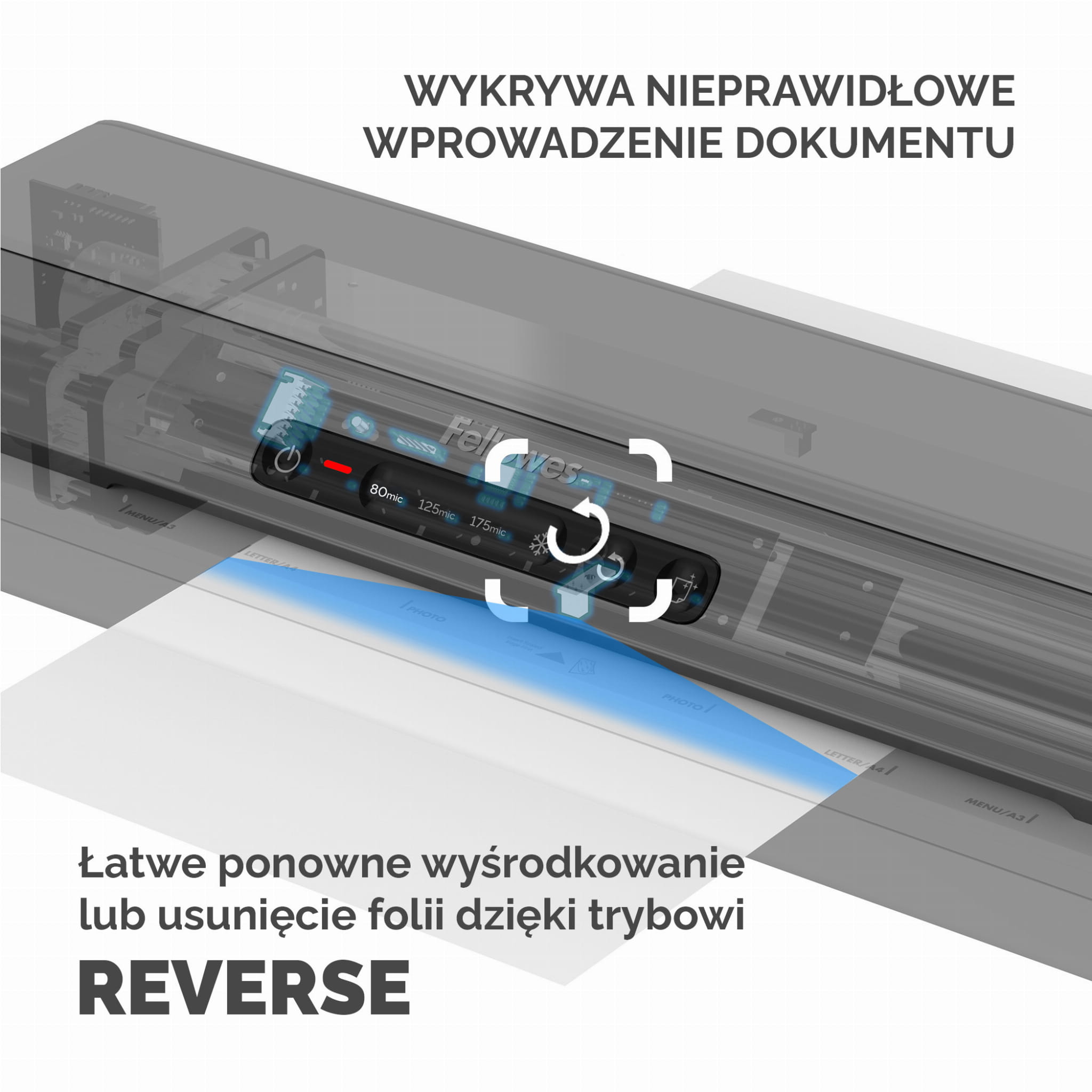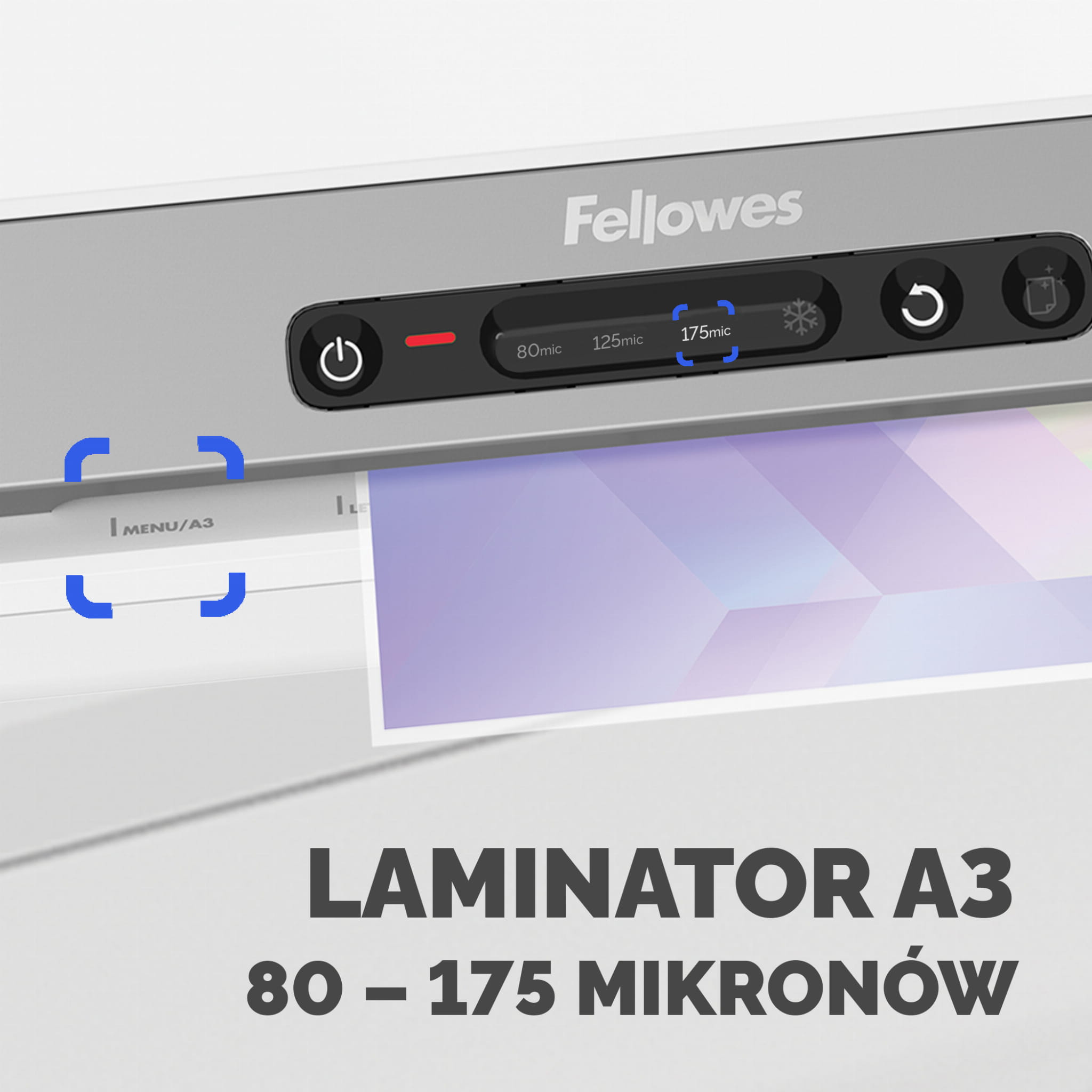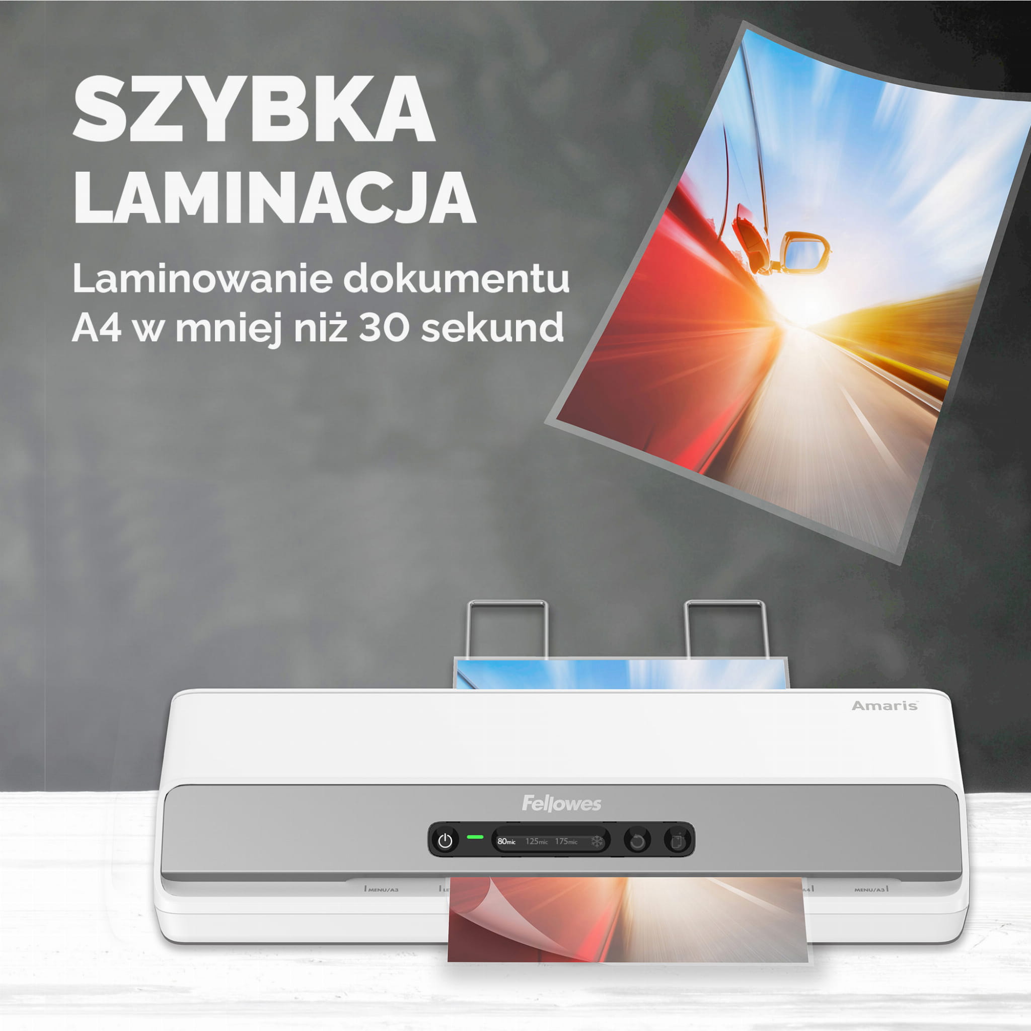 - umożliwia laminację dokumentów do formatu A3 w foliach o grubości od 80 do 175 mik.