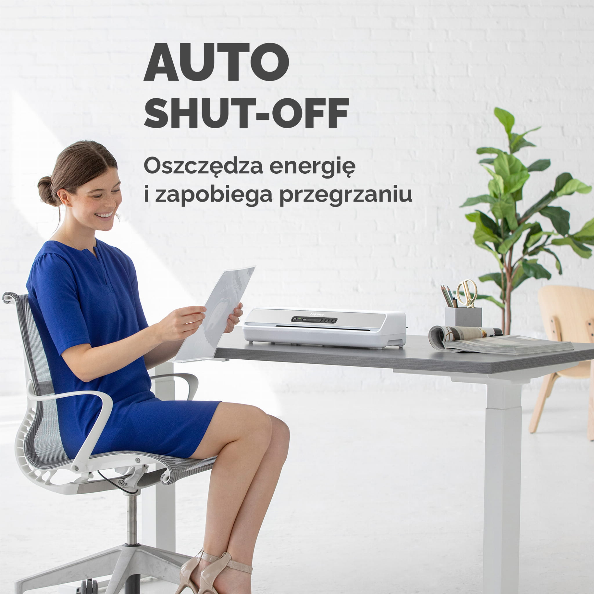 Laminator do regularnego użytku w małym / średnim biurze, zapewniający wysokiej jakości rezultaty laminacji dokumentów: