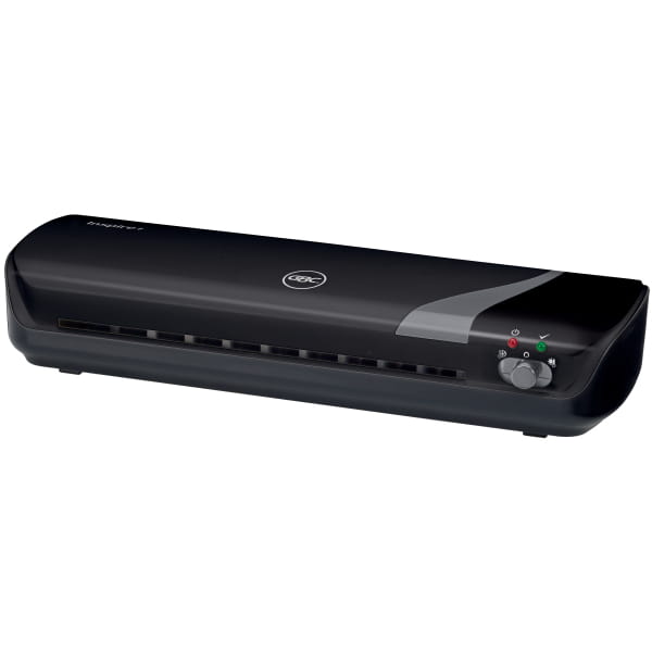 - Zestaw zawiera: 1x laminator GBC Inspire+ A4 (czarny), 1x narzędzie do zaokrąglania narożników, 1x trymer do łatwego docinania dokumentów do żądanego formatu, pakiet startowy, zawierający 5x folii do laminacji (2 x 75 mikronów). Kod produktu: 3740400.