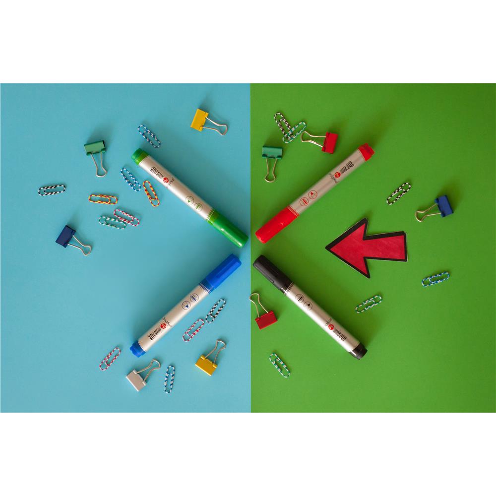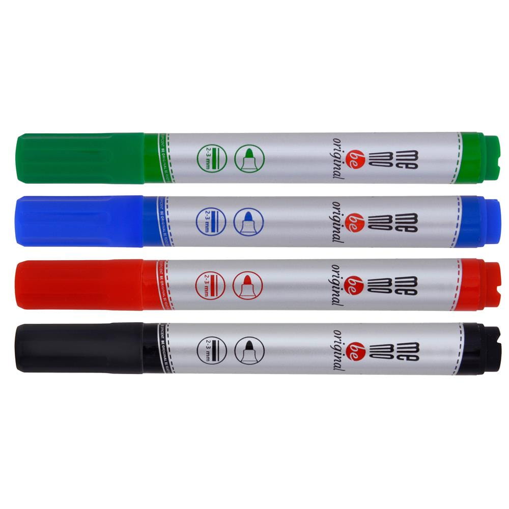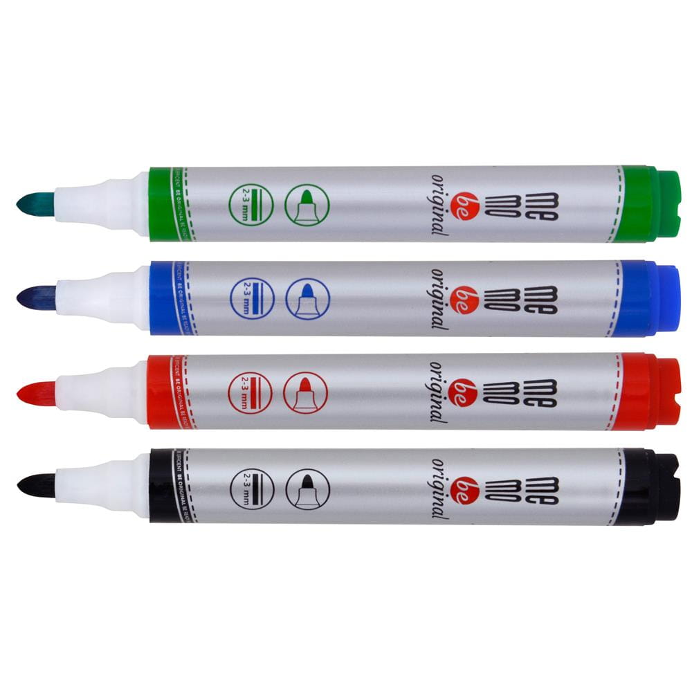 Markery do tablic suchościeralnych MEMOBE, z okrągłą końcówką, 4 kolory (czarny, czerwony, niebieski, zielony) - opakowanie 4 szt