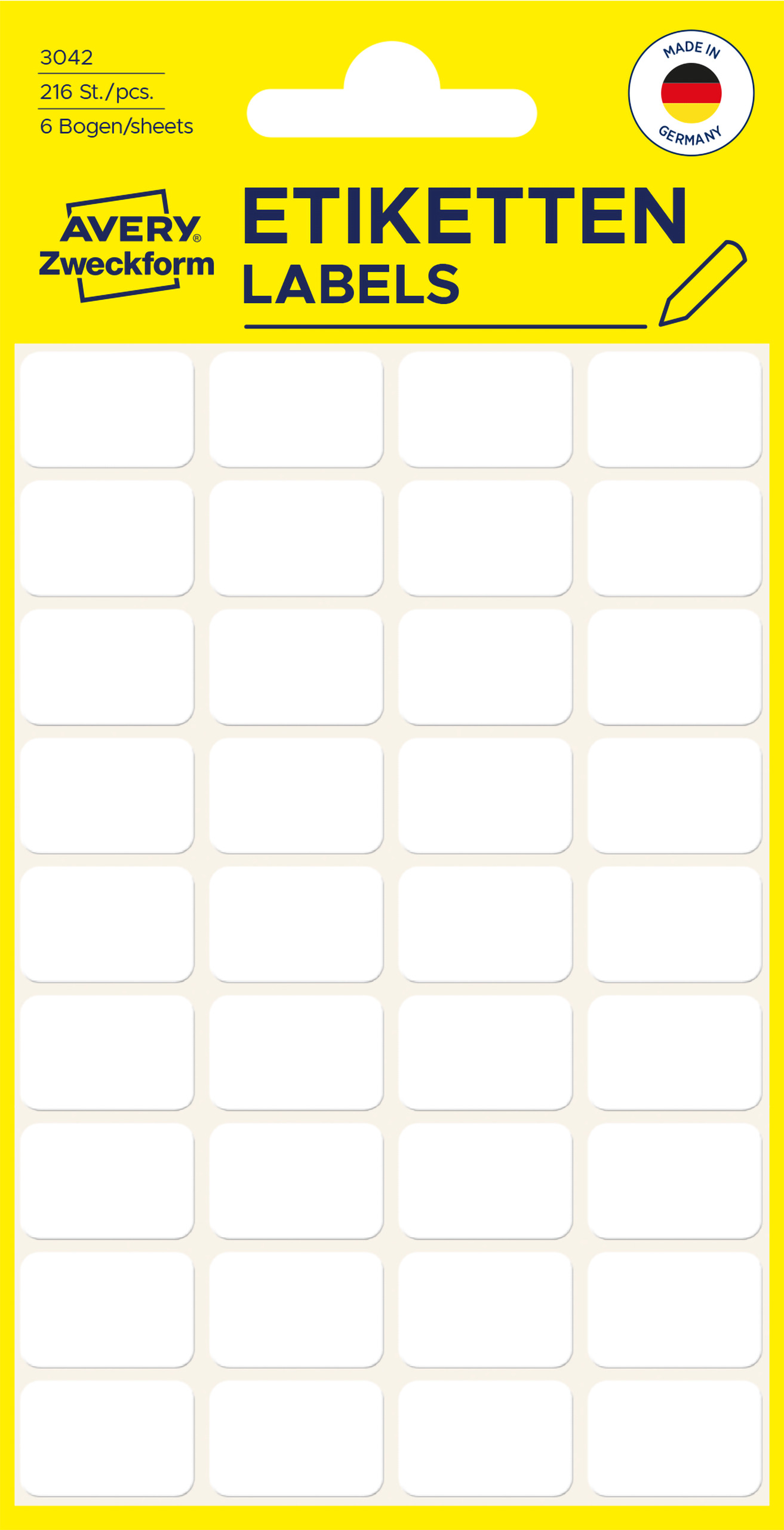 Minietykiety do opisywania ręcznego 18 x 12 mm, trwałe etykiety papierowe, białe etykiety samoprzylepne 216 etyk., 6 ark. /op., Avery 3042