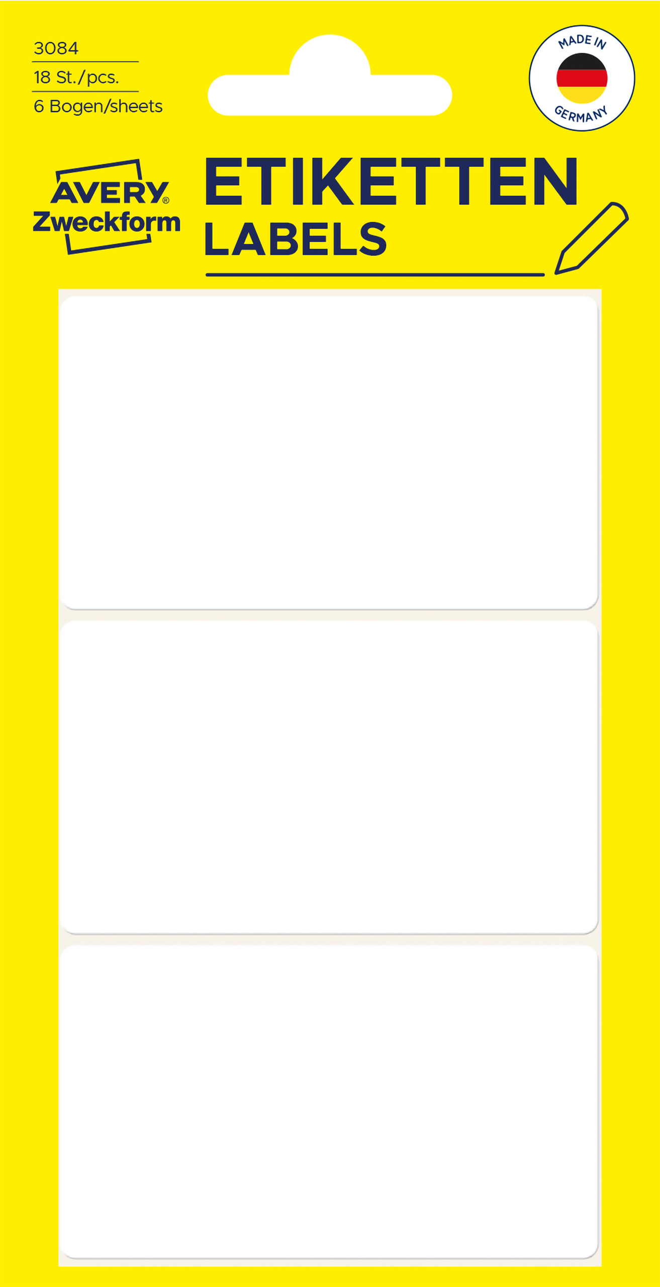 Minietykiety do opisywania ręcznego 66 x 38 mm, trwałe etykiety papierowe, białe etykiety samoprzylepne 18 etyk., 6 ark. /op., Avery 3084