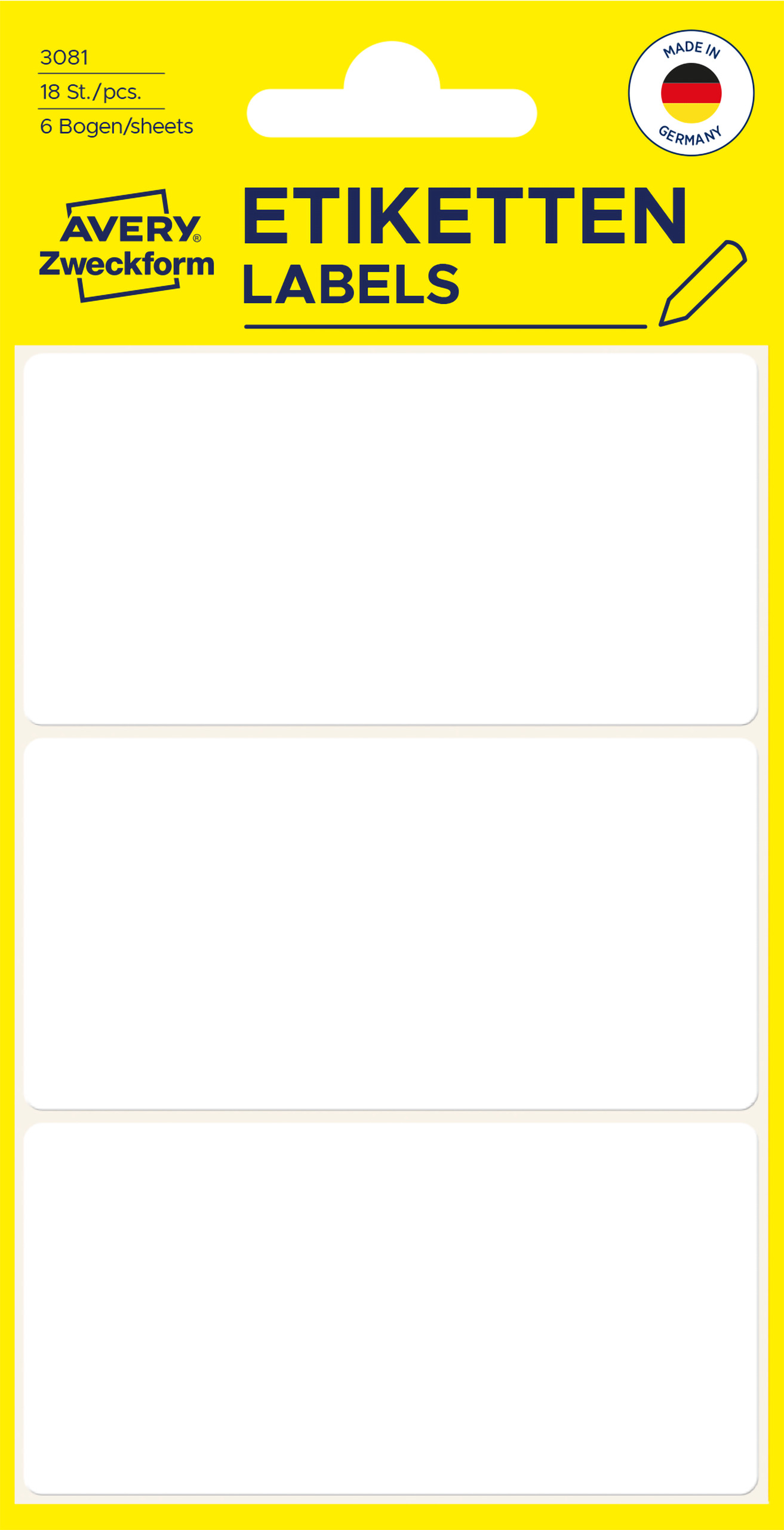Minietykiety do opisywania ręcznego 76 x 39 mm, trwałe etykiety papierowe, białe etykiety samoprzylepne 18 etyk., 6 ark. /op., Avery 3081