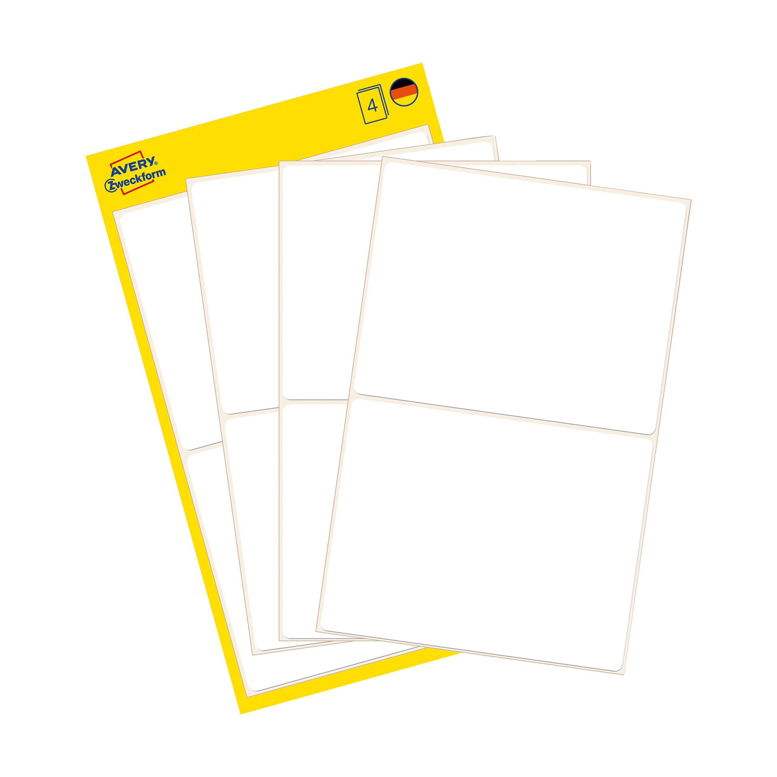 Minietykiety do opisywania ręcznego 77 x 59 mm, trwałe etykiety papierowe, białe etykiety samoprzylepne 8 etyk. , 4 ark./op., Avery 3046