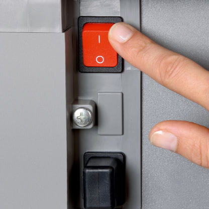 | Oddzielny główny wyłącznik do całkowitego odcięcia od prądu niszczarki | |