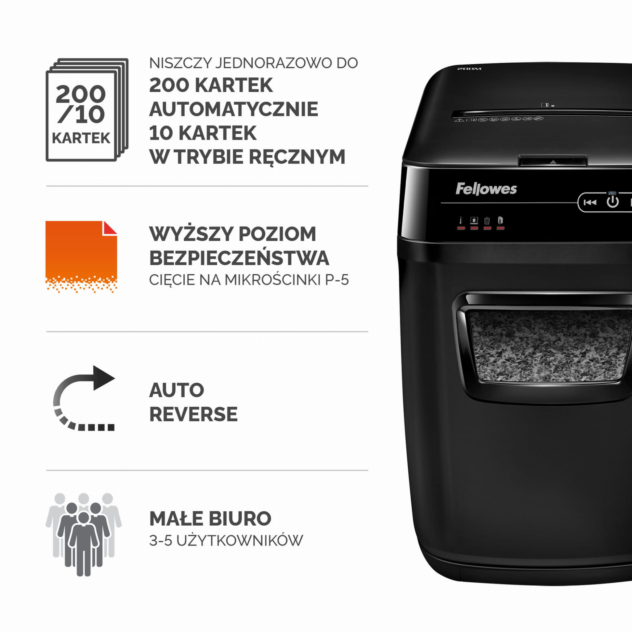 Niszczarka Fellowes AUTOMAX 200M ścinki 2x14mm P-5 # 3 lata gwarancji