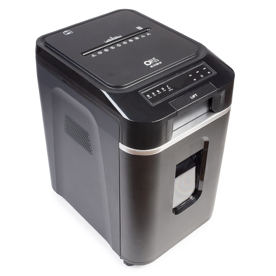 AS 2210M AF to niszczarka z automatycznym podajnikiem papieru tnąca papier w systemie paskowo-odcinkowym na maleńkie ścinki o powierzchni 2 x 12 mm (micro cut) i zapewniająca bezpieczeństwo na wysokim poziomie P-5. Urządzenie może pracować w trybie automatycznym – niszczy wówczas jednorazowo do 200 kartek A4 – lub w trybie ręcznym – może niszczyć wtedy do 10 kartek A4 (papier 80 g/m2). Stalowe separatory oraz noże z hartowanej stali to z kolei rozwiązanie zapewniające długą eksploatację i trwałość urządzenia. Niszczarkę obsłużysz za pomocą dotykowego panelu sterowania, na którym znajdziesz też wskaźniki LED informujące o aktualnej pracy i stanie urządzenia.