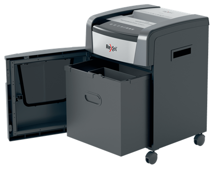 Duża pojemność podajnika, możliwość nieprzerwanej pracy oraz duży, 45-litrowy pojemnik na ścinki pozwalają na użytkowanie niszczarki w zakresie od umiarkowanego do intensywnego.