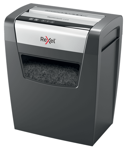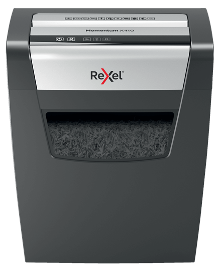 Posiada moc, aby niszczyć więcej! Niszczarka Rexel Momentum X410 niszczy do 10 kartek jednocześnie i może pracować nieprzerwanie przez 6 minut - idealnie nadaje się do użytku domowego.Model X410 wyposażony jest w technologię zapobiegania zacięciom, która gwarantuje pracę bez zbędnych przestojów.