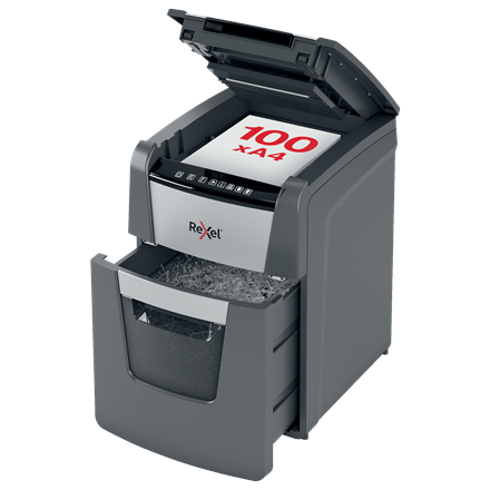 Niszczarka automatyczna do papieru Optimum AutoFeed+ 100X jednorazowo niszczy automatycznie do 100 kartek A4 (80 gsm), tnąc arkusze na konfetti (o wymiarach 4 x 28 mm), co zapewnia poziom bezpieczeństwa P-4. Wyposażona jest w automatyczny podajnik i 34-litrowy pojemnik na ścinki, co sprawia, że idealnie nadaje się do użytku biurowego. Nie wymaga ręcznego podawania papieru ani wcześniejszego usuwania zszywek i spinaczy - ta automatyczna niszczarka całą pracę wykona za Ciebie.
