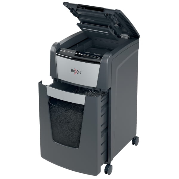 Niszczarka automatyczna do papieru Optimum AutoFeed+ 300M jednorazowo niszczy automatycznie do 300 kartek A4 (80 gsm), tnąc arkusze na mikrościnki (o wymiarach 2 x 15 mm), co zapewnia poziom bezpieczeństwa P-5. Wyposażona jest w automatyczny podajnik i 60-litrowy pojemnik na ścinki, co sprawia, że idealnie nadaje się do użytku biurowego. Nie wymaga ręcznego podawania papieru ani wcześniejszego usuwania zszywek i spinaczy - ta automatyczna niszczarka całą pracę wykona za Ciebie.