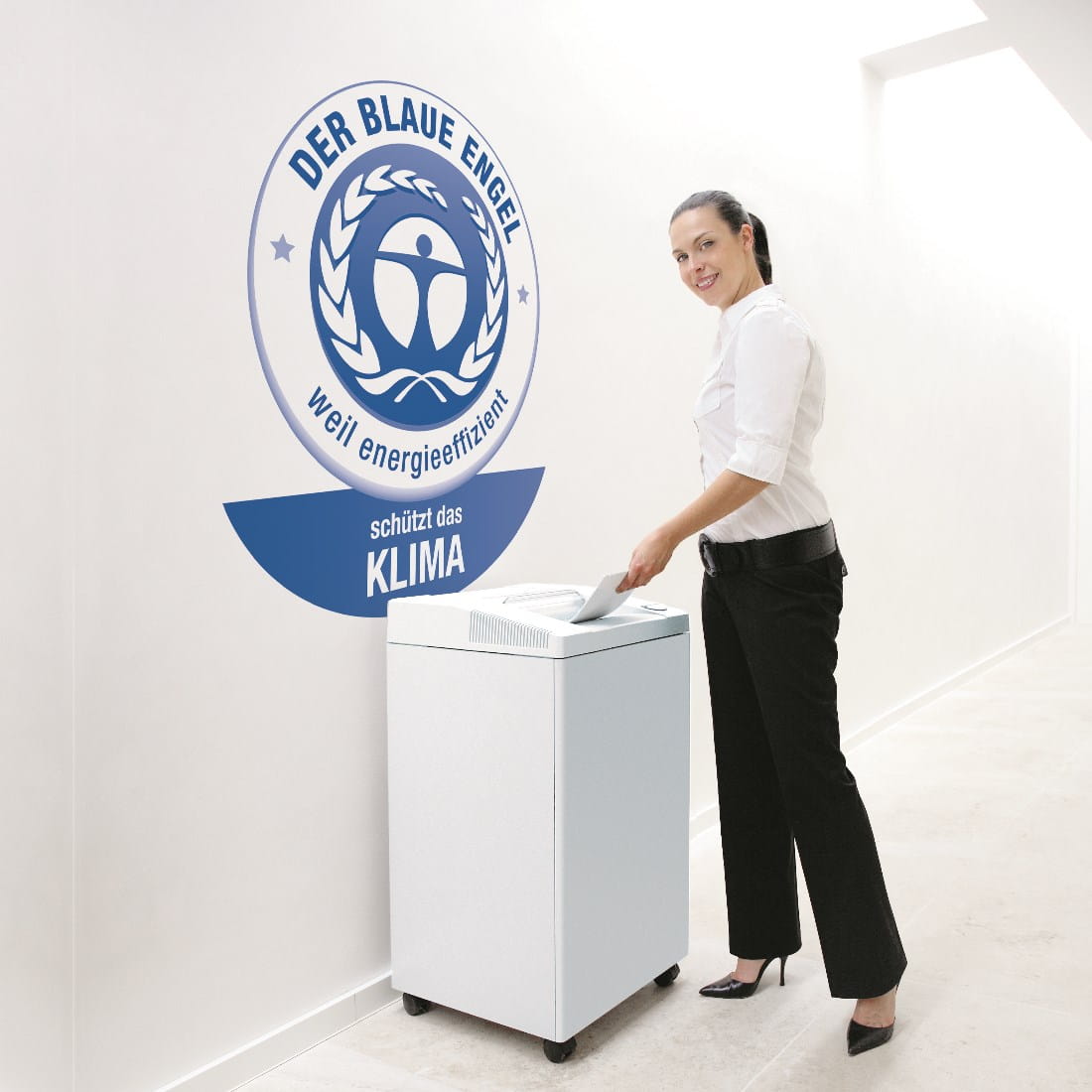 Ze względu na wysoką efektywność energetyczną niszczarka otrzymała niemiecką nagrodę „Blue Angel”. „Zerowe” zużycie energii w tych modelach polega na całkowitym oraz automatycznym wyłączeniu urządzenia, co skutkuje zerowym zużyciem energii już po 15 minutach przerwy w użytkowaniu.