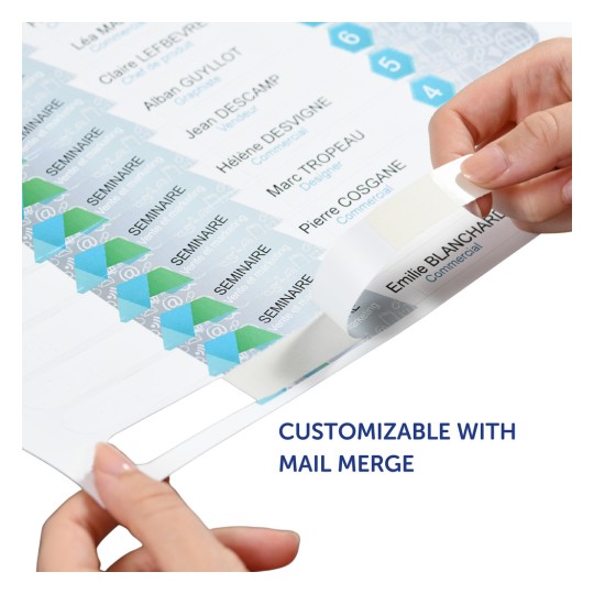 • Łatwe do zadruku na własnym komputerze (logo, nazwa wydarzenia itp.) - projektuj i drukuj spersonalizowane opaski na nadgarstek w szybki i prosty sposób przy użyciu bezpłatnych szablonów oraz oprogramowania od Avery Zweckform dostępnego na: www.avery-zweckform.pl.