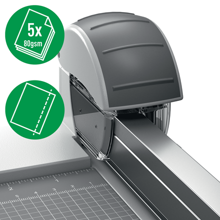 Wysokiej jakości, wymienne ostrze do perforacji przeznaczone do trymerów Leitz Precision Office (kod produktu: 90270000 i 90280000). Tnie szybko, precyzyjnie i bez wysiłku do 5 kartek A4 (80 g/m²) jednocześnie. Ostrze jest zamknięte w plastikowej kasecie, co sprawia, że jest ono bezpieczne do cięcia papieru oraz prac rękodzielniczych zarówno w domu, jak i w biurze lub w szkole. Można je łatwo i szybko wymienić wkładając kasetę z ostrzem do głowicy tnącej z ergonomicznie zaprojektowanym uchwytem. W ofercie dostępne są także ostrza do cięcia prostego i falistego. To wymienne, stalowe ostrze rotacyjne zapewni Ci możliwość precyzyjnego cięcia papieru trymerem przez wiele lat.